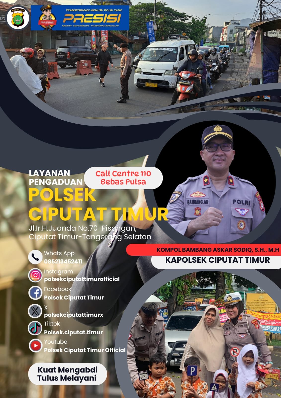 Bagi warga Ciputat dan Ciputat Timur yang membutuhkan bantuan kepolisian atau ingin melaporkan kejadian mencurigakan, dapat menghubungi: