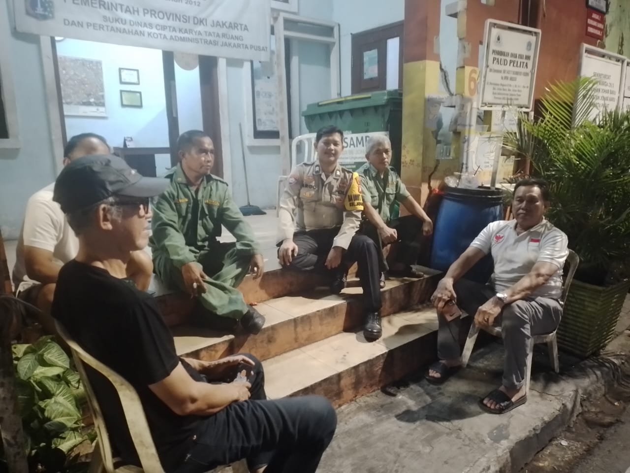 Kegiatan ini berlangsung di Pos Kamling RW 06, Jl. Percetakan Negara II, dan dihadiri oleh Ketua RT serta tokoh keamanan lingkungan, termasuk Sdr. Edy selaku perwakilan warga RW 06. Dalam