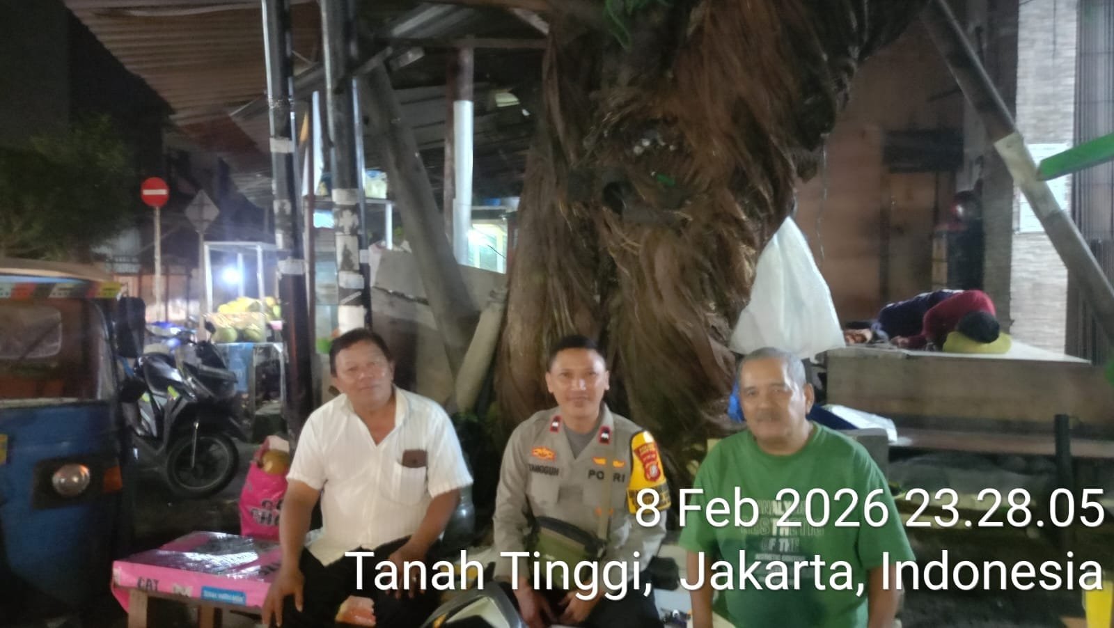 Kegiatan tersebut dilaksanakan oleh Bhabinkamtibmas Kelurahan Tanah Tinggi, Aipda Tangguh, dengan menyambangi Pos Kamling di Jalan Baladewa. Dalam kesempatan tersebut, petugas bertemu dan berdialog dengan Ketua RT 06 RW 03, Pak Uki, serta Katibum sekaligus awak Satkamling, Pak Awang, guna memperkuat koordinasi kewilayahan.