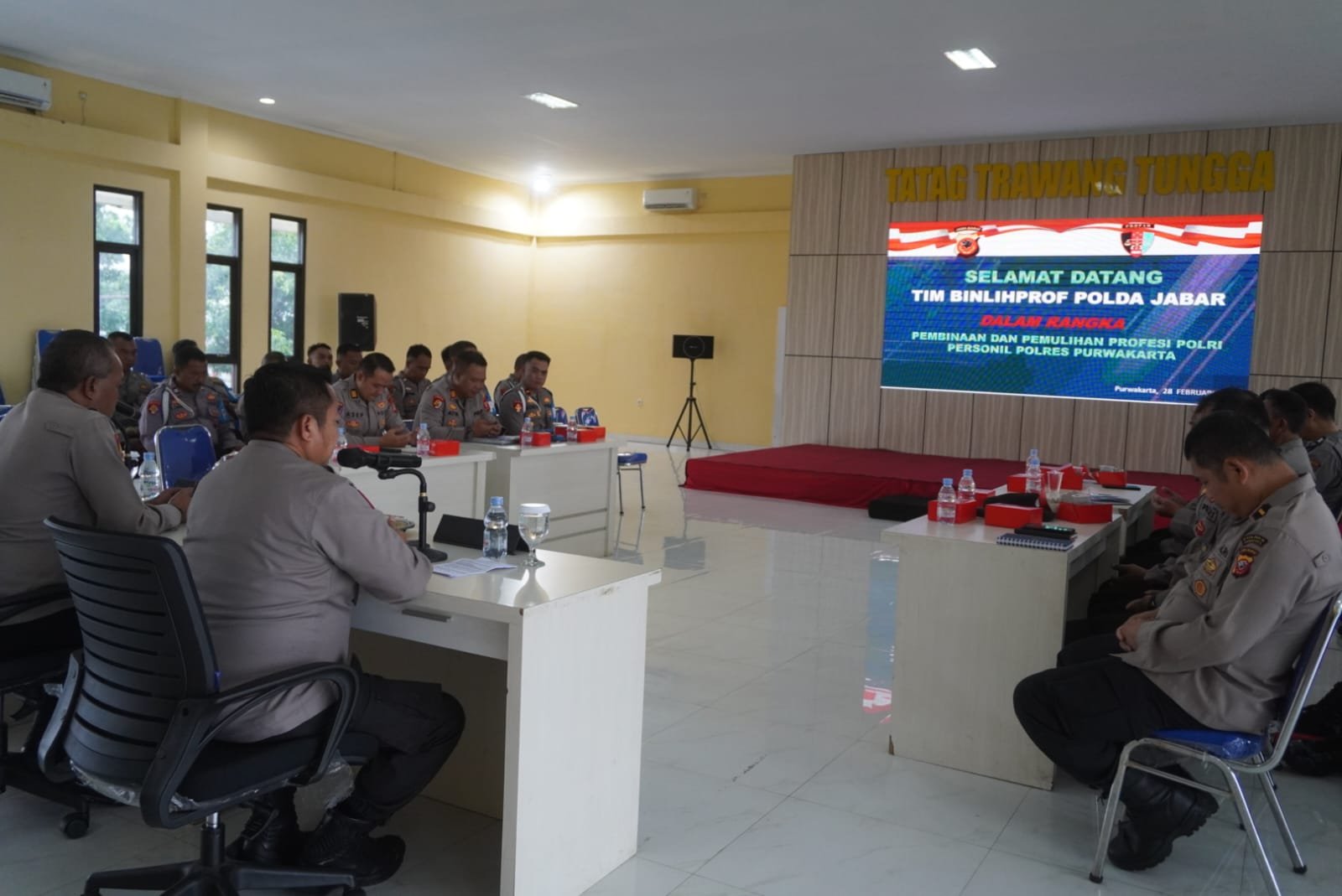 Kegiatan yang digelar di Aula Tatag Trawang Tungga, Mapolres Purwakarta dipimpin Kasubbag Rehabpers Bid Propam Polda Jabar, Kompol Agus Suryana, S.P.d didampingi Kabag SDM Polres Purwakarta, Kompol Adi Fauzi,.SE, Kasi Propam Polres Purwakarta, AKP Atik Sakron,.S.H.