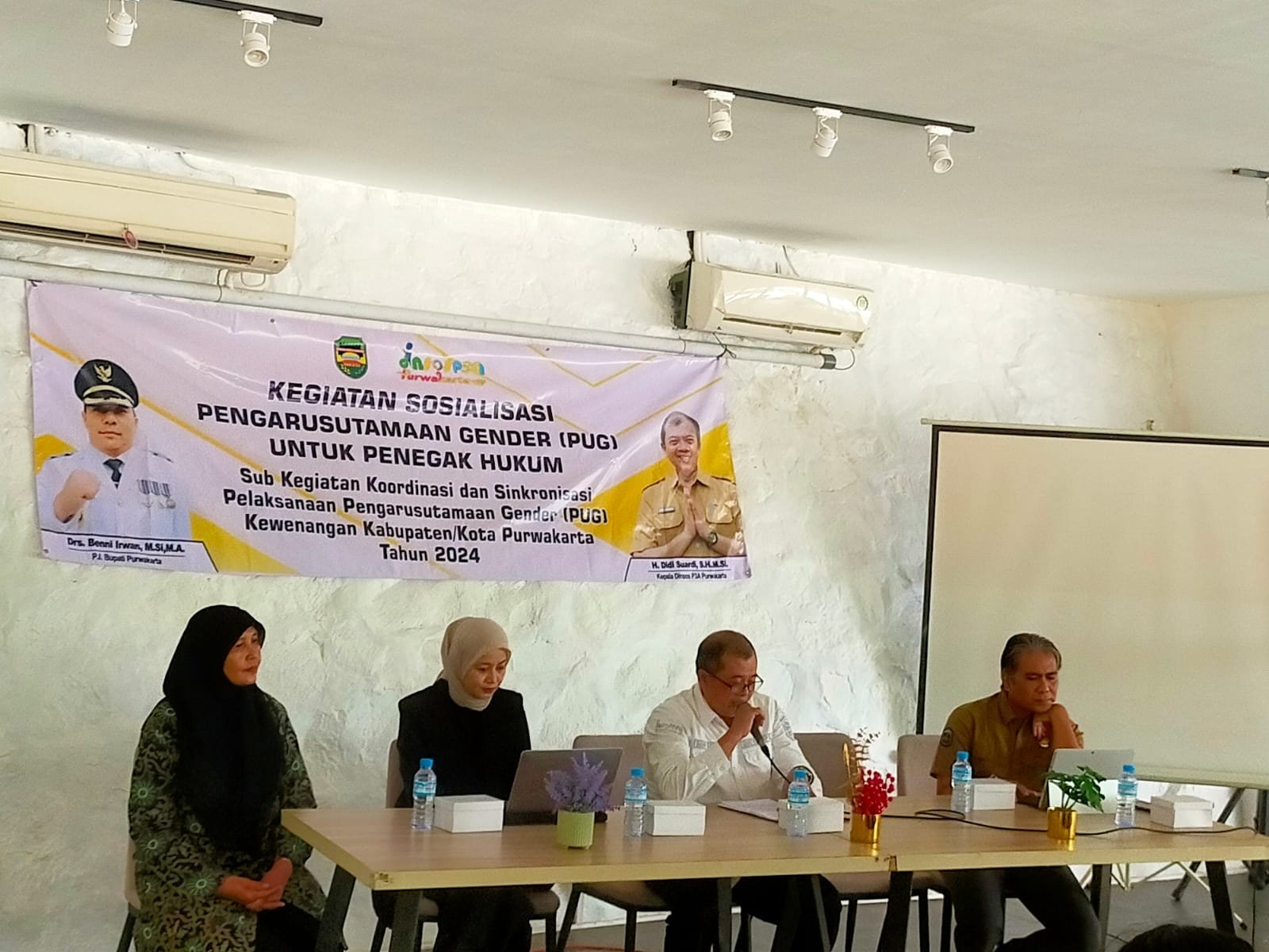 Dalam kegiatan tersebut dibuka langsung Kepala Dinsos P3A Purwakarta, Didi Suardi dengan diisi materi Perencanaan Responsif Gender oleh Agus Kurniawan dari Bappelitbangda Purwakarta, Kajian Gender oleh Dr Antik Bintari dari osen Ilmu Pemerintah Fakultas dan Politik Fisip Unifersitas Padjajaran dan Aspek Penegakan Hukum oleh Faza Dhora dari Dosen Politeknik STIA LAN Jakarta.