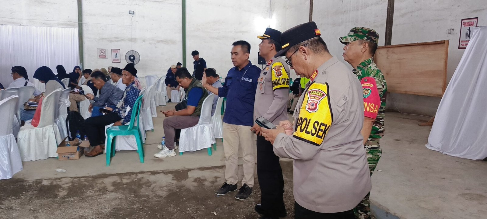 Kompol Suparlan langsung melakukan pengecekan kesiapan petugas KPPS, PPS, dan PPK dalam melaksanakan pleno rekapitulasi, serta memastikan keamanan pada lokasi rapat pleno.