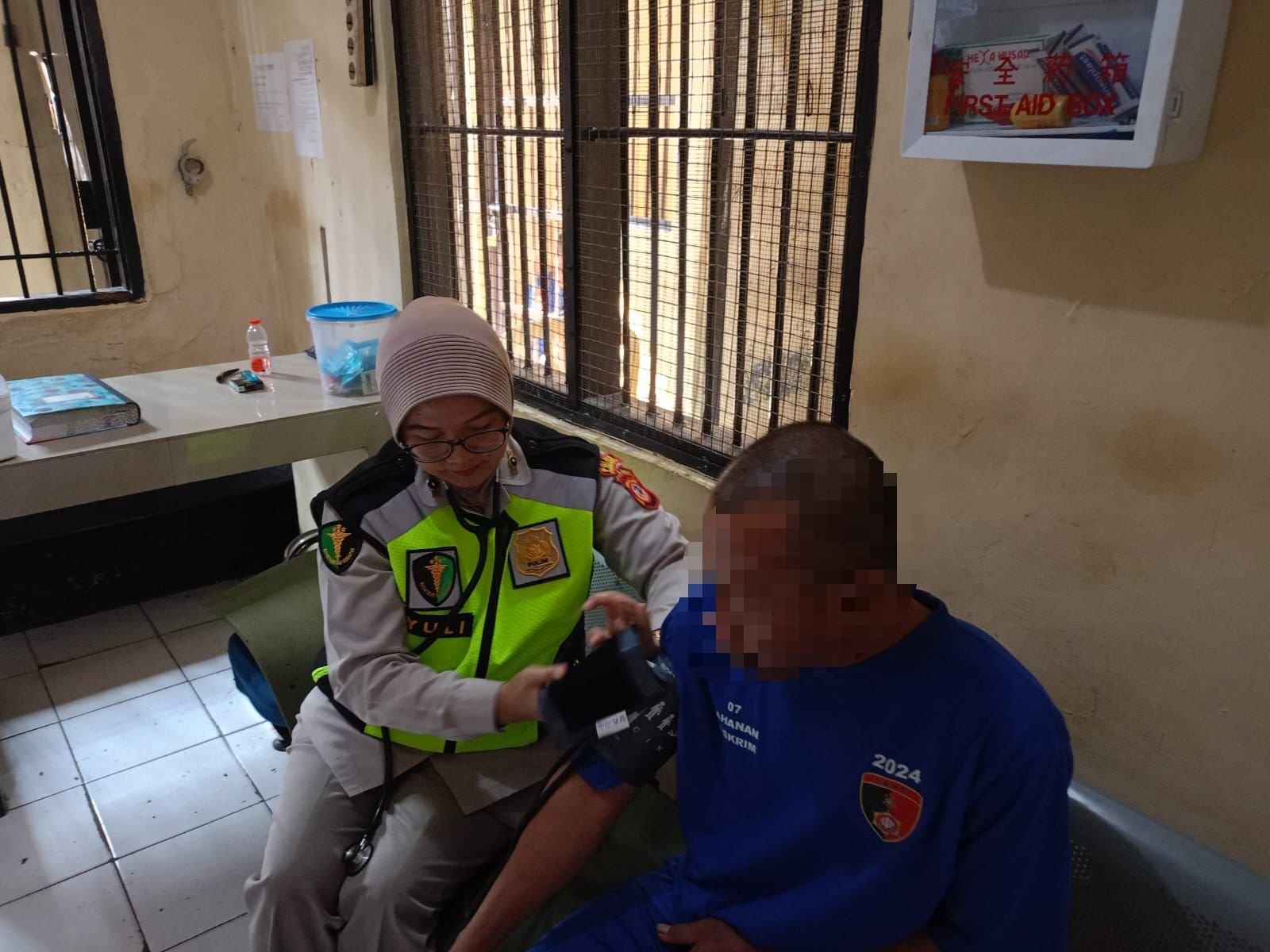 “Pengecekan kesehatan terhadap tahanan sangat penting dilakukan agar dapat mengetahui kondisi dan riwayat penyakit yang diderita oleh tahanan. Jika didapati tahanan sakit, pada saat itu juga langsung dilakukan pemeriksaan kesehatan lebih lanjut serta pemberian obat,” ungkap pria yang akrab disapa Enjang itu, pada Senin, 29 Juli 2024.