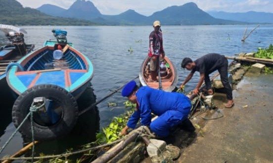 Personel Satuan Polisi Perairan dan Udara (Sat Polairud) Polres Purwakarta, yakni Bripka Yulianto dan Brigadir Adi Santoso, turun langsung melakukan aksi bersih-bersih dengan memungut sampah serta membersihkan eceng gondok yang menumpuk di pesisir Waduk Jatiluhur.