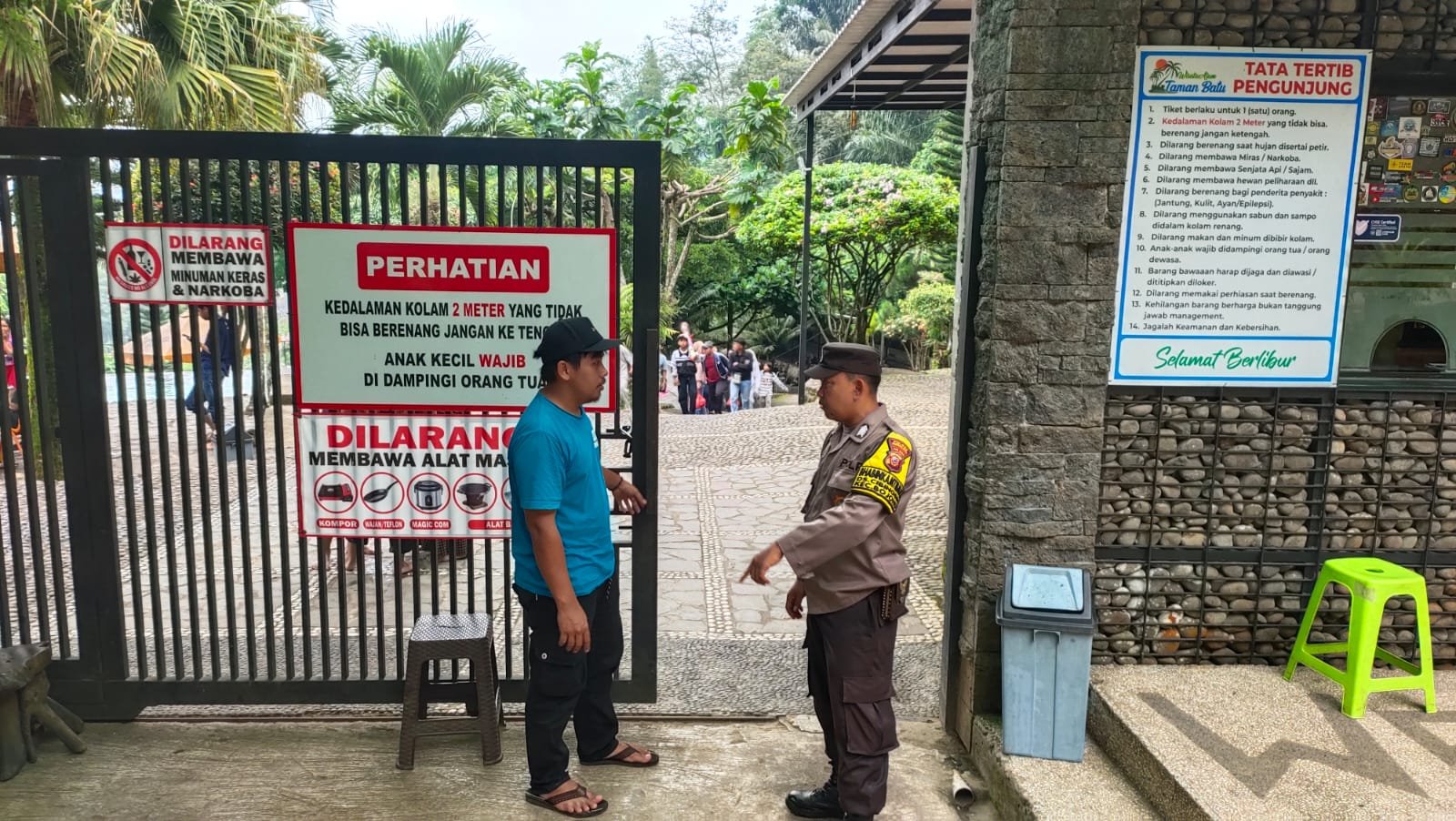 Seperti yang dilakukan personel Polsek Bojong. Dengan humanisnya melakukan imbauan kepada masyarakat untuk selalu berhati-hati dalam berwisata.