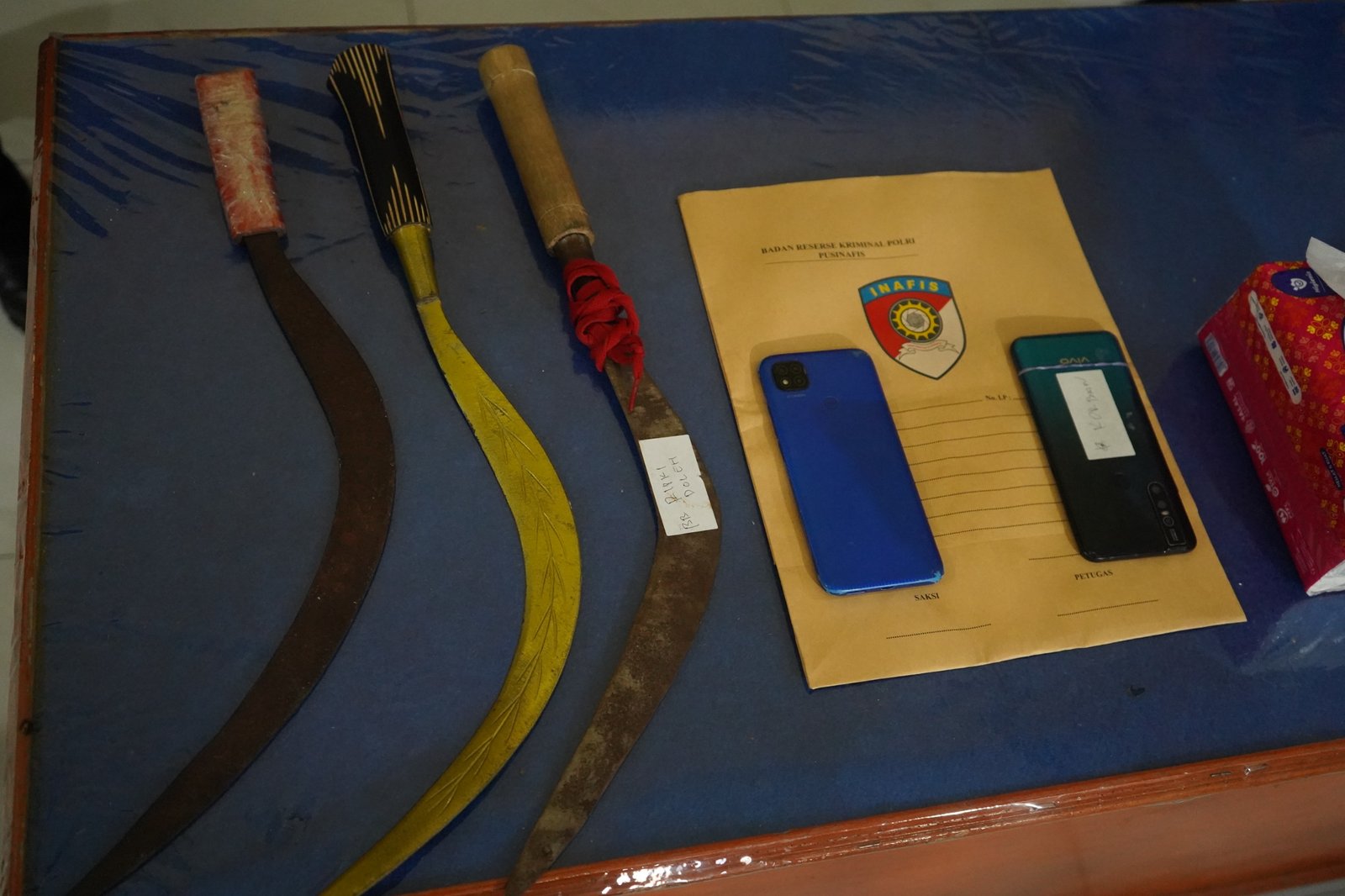 Dalam pengungkapan kasus ini, sambung Lilik, pihaknya mengamankan barang bukti berupa tiga buah senjata tajam jenis celurit, sebuah helm warna hitam, dua buah handphone merk Vivo, sebuah pakaian korban dan satu unit kendaraan bermotor merk Honda beat berwarna hitam.