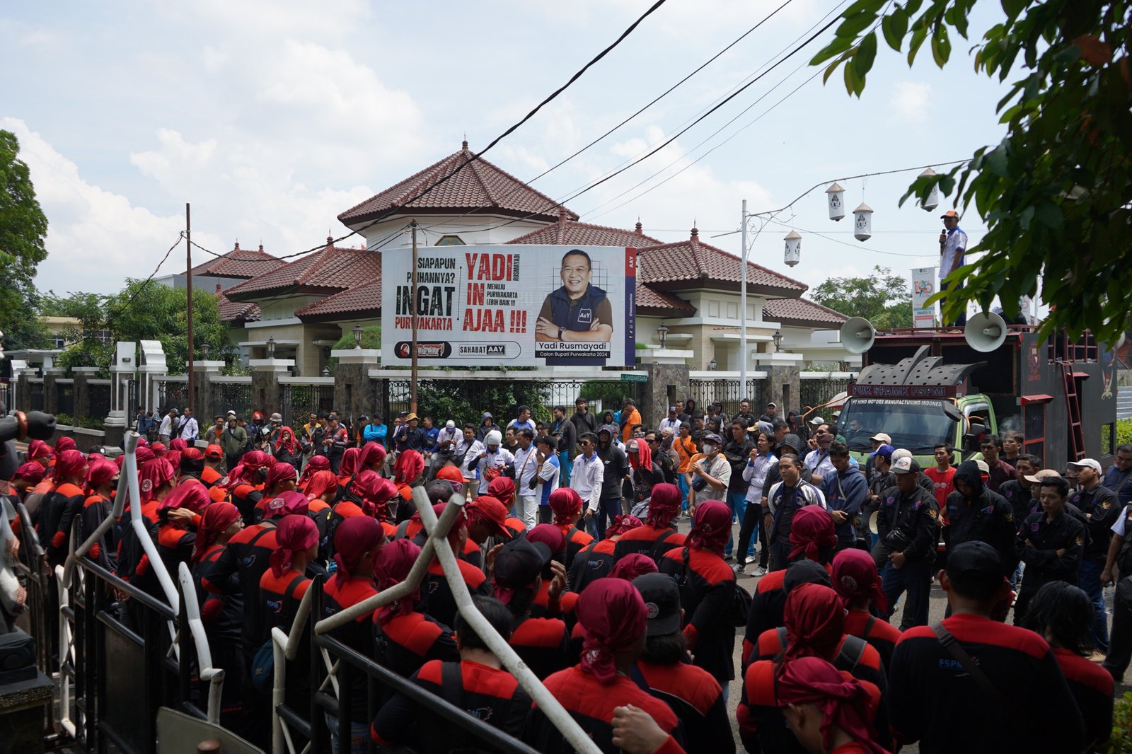 refubliknews.com, – Purwakarta – Polres Purwakarta mengerahkan sejumlah personel untuk mengawal aksi aksi unjuk rasa dari Federasi Serikat Pekerja Metal Indonesia (FSPMI) Kabupaten Purwakarta ke kantor Pemkab Purwakarta, Pada Kamis, 21 November 2024.