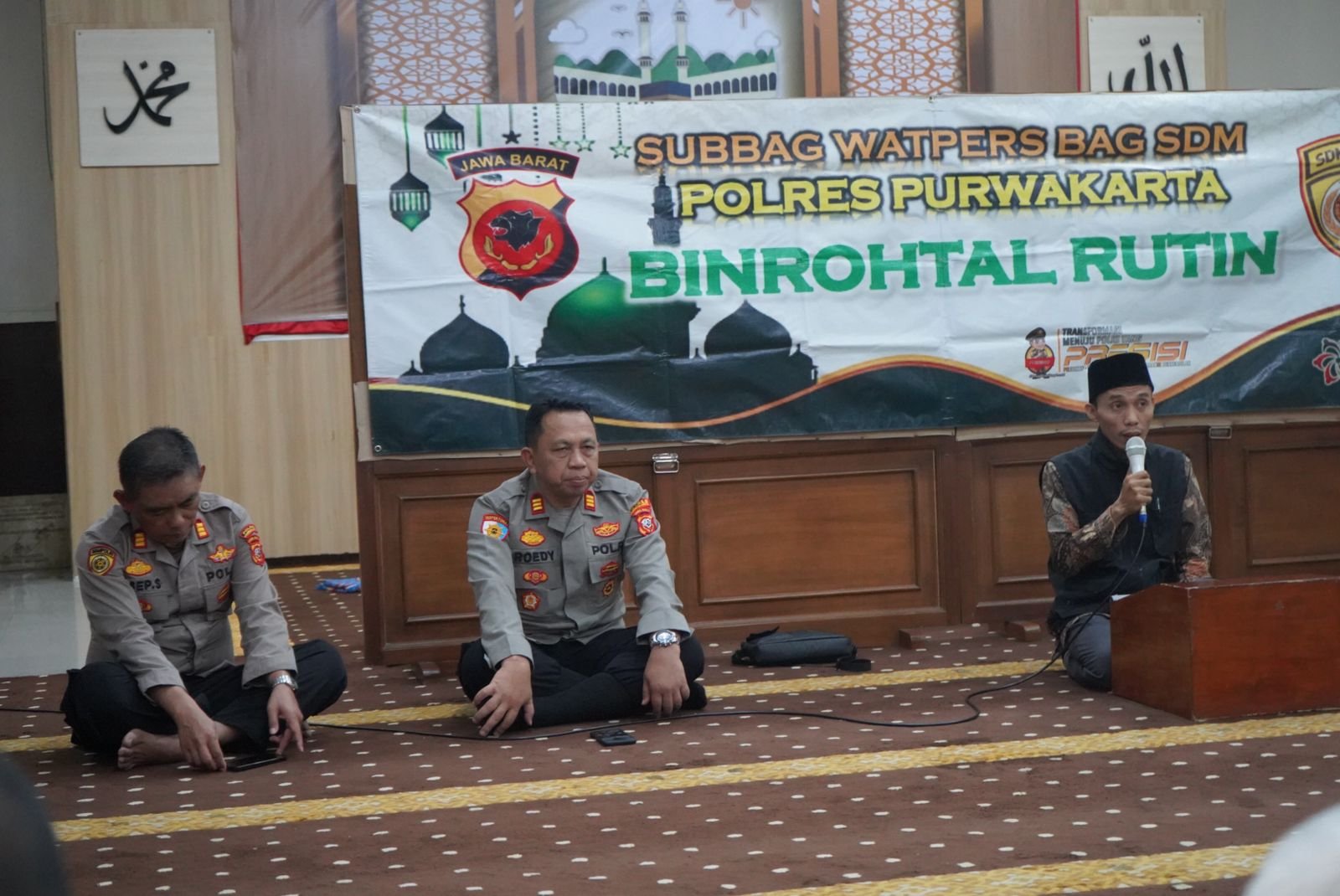 refubliknews.com, – Purwakarta – Melalui Bimbingan Rohani dan Mental (Binrohtal) Polres Purwakarta, Polda Jawa Barat berupaya meningkatkan iman dan taqwa kepada Tuhan Yang Maha Esa para anggota Polri khususnya anggota Polres Purwakarta.