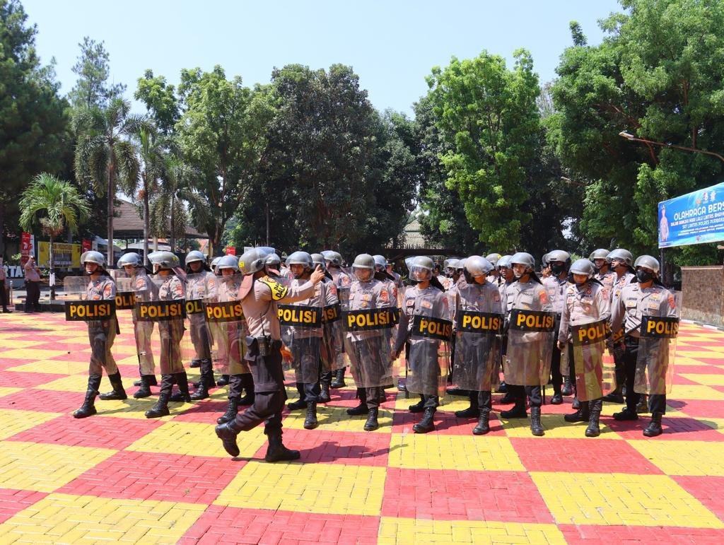 Purwakarta- Untuk memastikan kesiapan personel dalam menangani konflik sosial yang bisa terjadi saat Pemilu 2024 digelar, Polres Purwakarta, Polda Jawa Barat menggelar pelatihan sistem pengamaman kota (Sispamkota) di halaman Polres setempat,