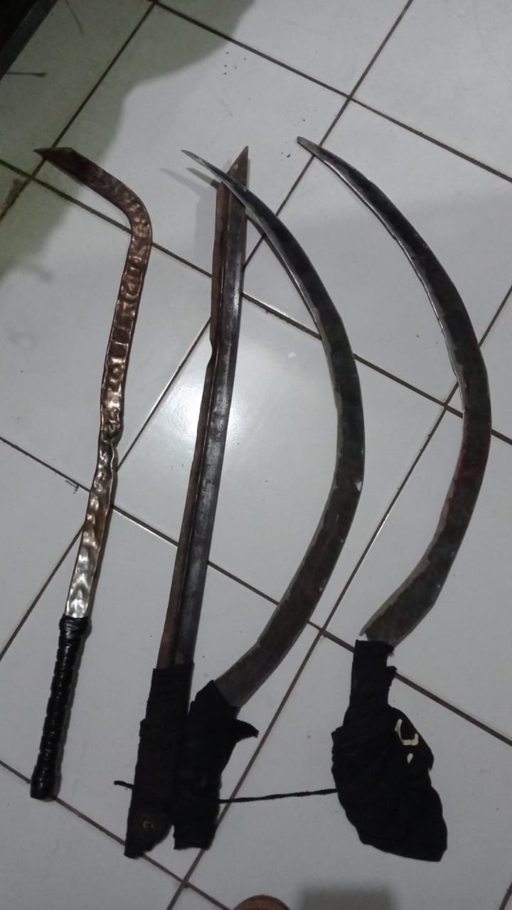Saat dilakukan penggerebekan, lanjut Kapolsek, petugas berhasil mengamankan lima anggota geng motor Warbu beserta empat bilah senjata tajam jenis celurit yang dibawa mereka.