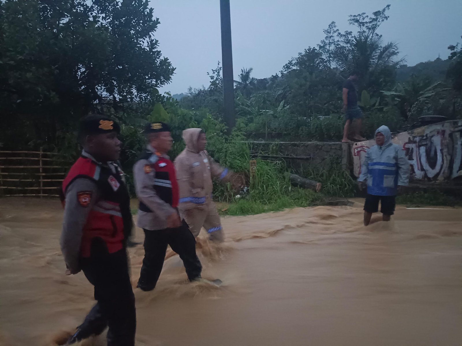 Dalam kegiatan tersebut, petugas melakukan pemantauan situasi dan memberikan pengamanan di lokasi yang terdampak banjir.