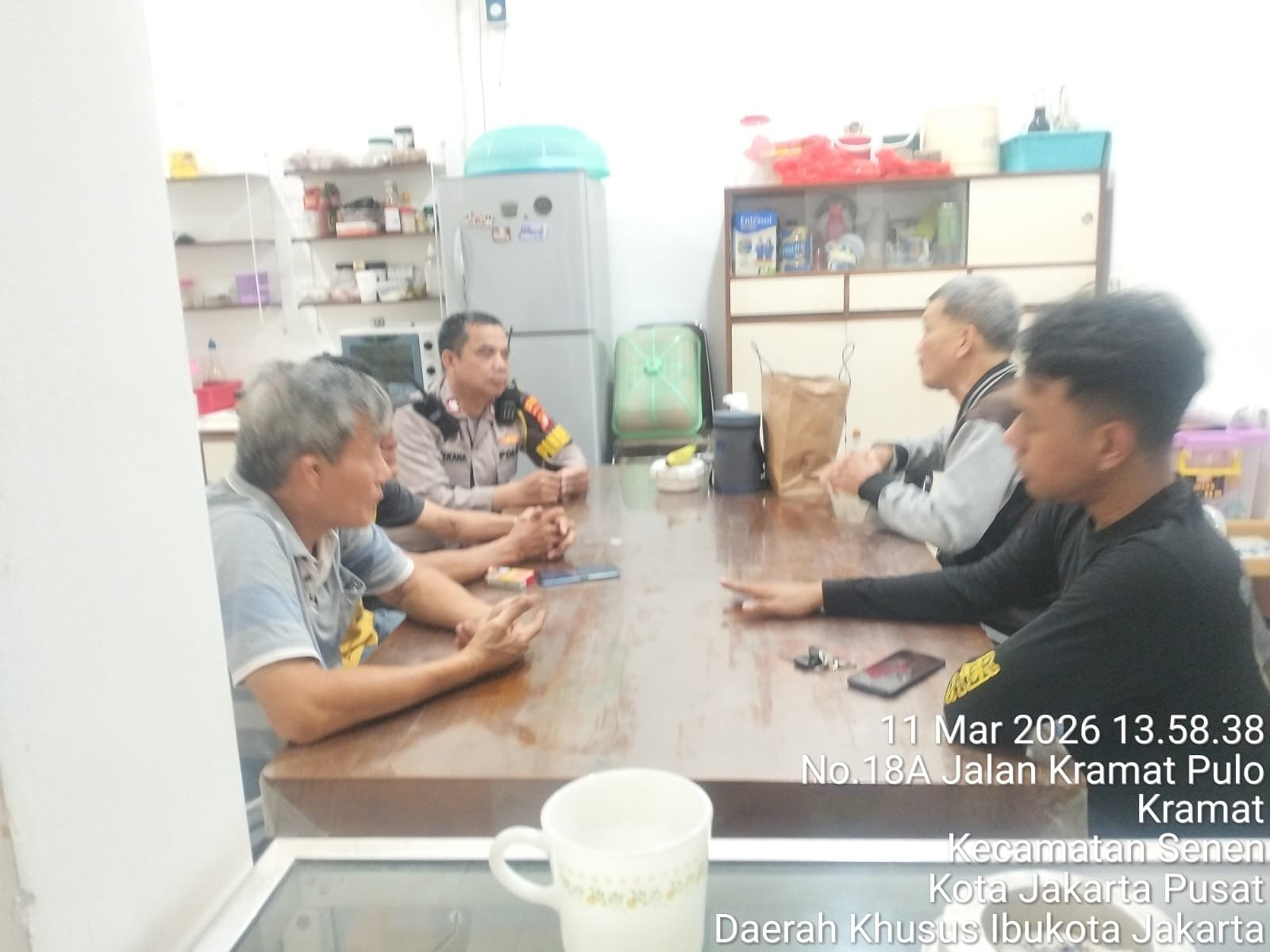 Jakarta — Aparat Kepolisian dari Polsek Senen merespons laporan masyarakat melalui layanan Call Center 110 terkait permintaan kehadiran polisi di sebuah rumah yang berlokasi di Jalan Kramat Pulo No. 18, RT 004 RW 002, Kelurahan Kramat, Kecamatan Senen, Jakarta Pusat, pada Rabu (11/3).