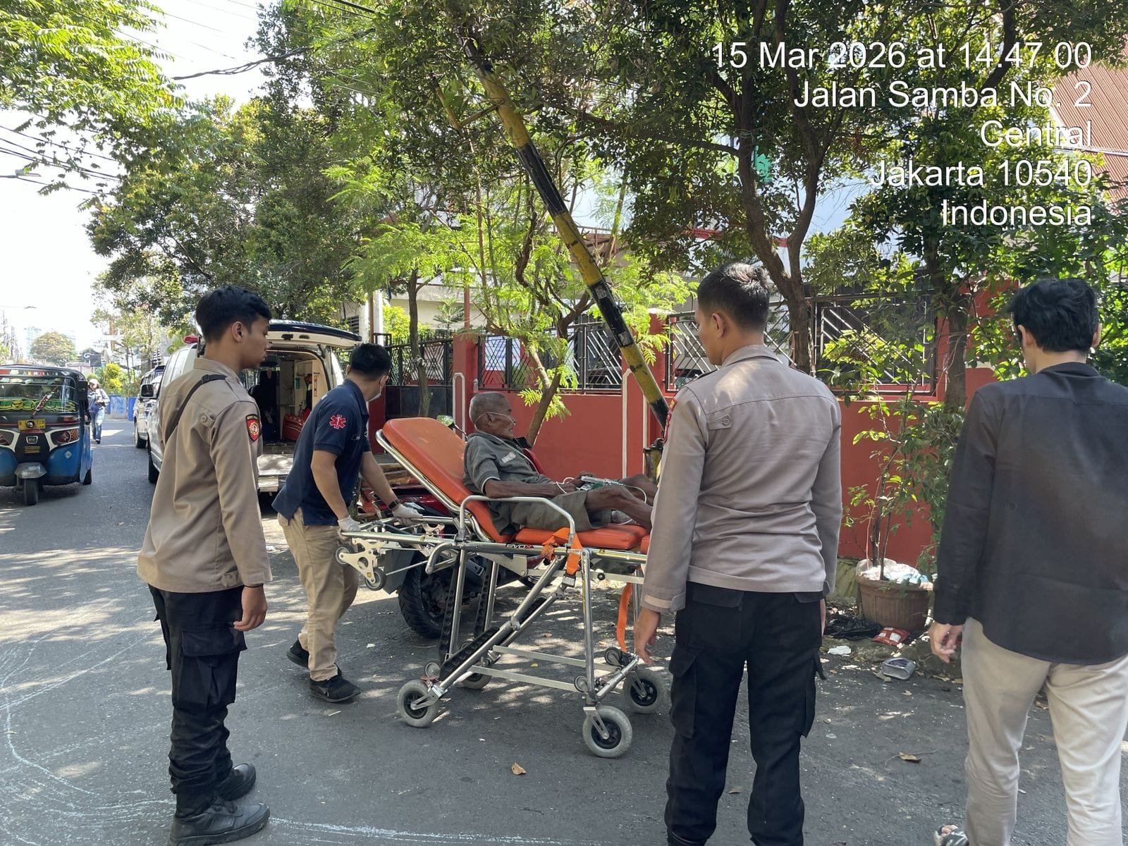 Peristiwa tersebut terjadi sekitar pukul 12.30 WIB hingga 14.45 WIB di samping Gereja Maranatha, Jalan Baladewa, Kelurahan Tanah Tinggi, Kecamatan Johar Baru. Anggota Pos Pam Ops Ketupat Kota Paris, Brigadir Romi Santosa dan Bripda Muhammad Gilang Rohmannurohim menerima laporan warga yang datang ke pos pengamanan terkait keberadaan seorang lansia yang tergeletak dalam kondisi sakit.