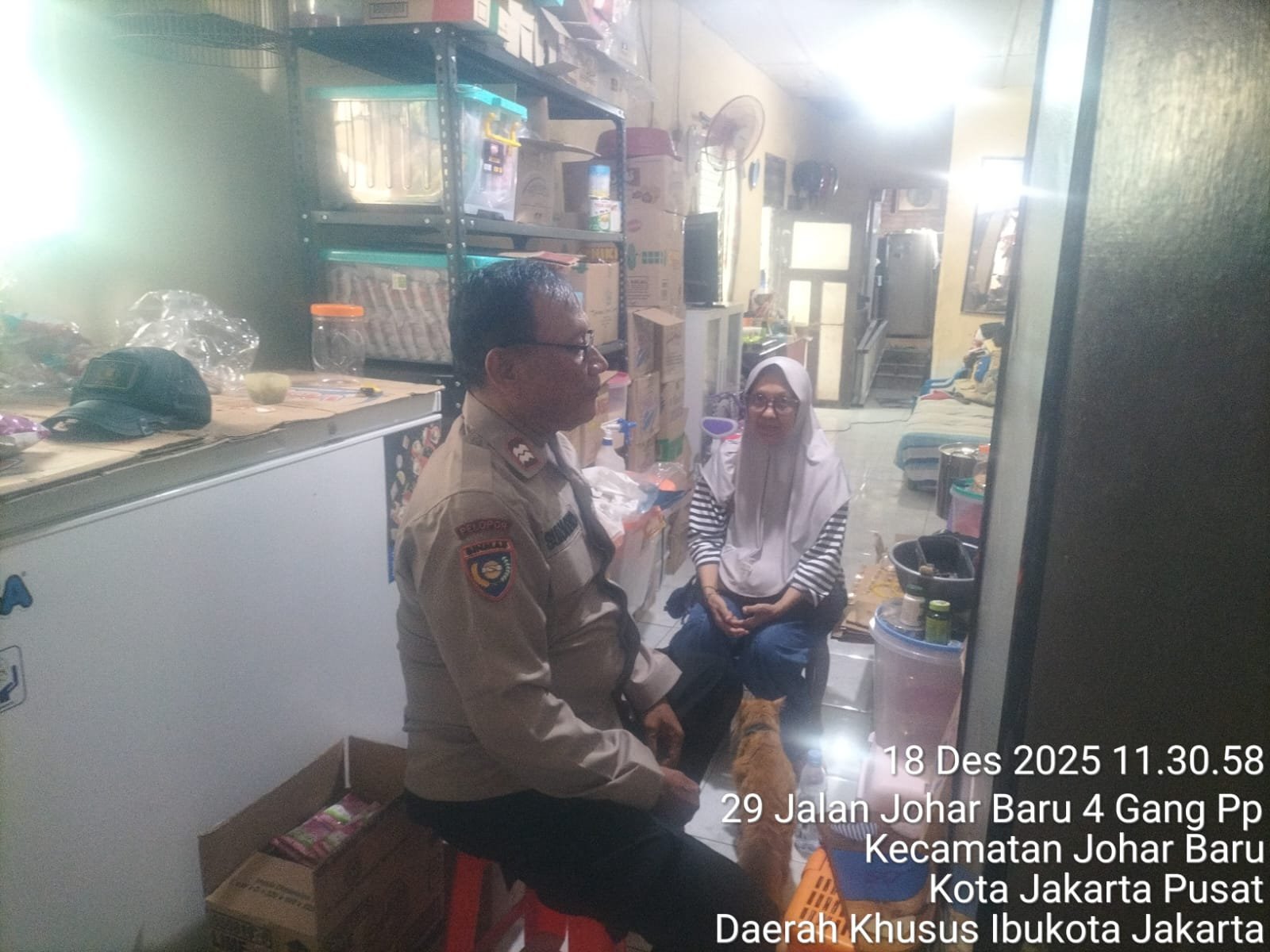 Jakarta Pusat — Kepolisian Resor Metro Jakarta Pusat melalui jajaran Polsek Johar Baru menunjukkan kepedulian dan empati kepada masyarakat dengan melakukan sambang korban kejahatan. Kegiatan tersebut dilaksanakan pada Kamis (18/12/2025) sekitar pukul 11.30 WIB di rumah Yanti Yulianti, warga Jalan Johar Baru Gang PP No. 26 RT 09/RW 11, Kelurahan Johar Baru, Jakarta Pusat.