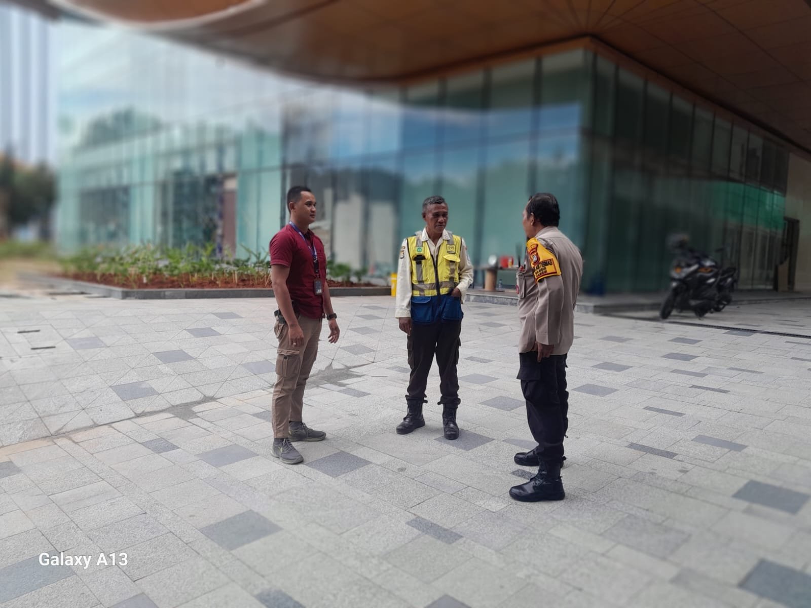 Dengan senyum ramah dan komunikasi yang akrab, Aiptu Amirullah berdialog langsung dengan petugas Satpam. Tak sekadar datang memantau, ia juga menyampaikan pesan-pesan penting terkait keamanan dan ketertiban masyarakat (kamtibmas), khususnya terkait potensi gangguan keamanan di area perkantoran.