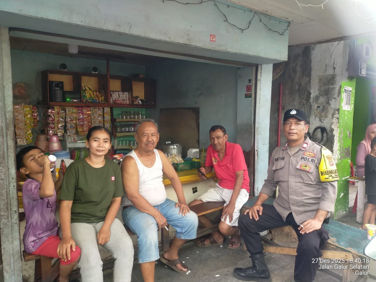 Dalam kesempatan tersebut, Aiptu Baktiar menyampaikan pesan-pesan kamtibmas, khususnya terkait deteksi dini potensi gangguan keamanan menjelang malam pergantian tahun. Selain itu, dilakukan pula tukar informasi dengan warga serta ajakan untuk bersama-sama menjaga lingkungan agar tetap aman dan kondusif.