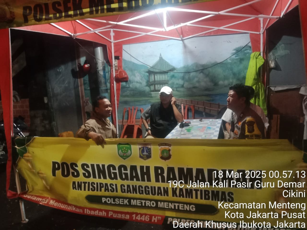 refubliknews.com, – Jakarta Pusat – Polsek Metro Menteng terus berupaya menjaga keamanan dan ketertiban di wilayah hukumnya, terutama selama bulan suci Ramadan. Dalam rangka mengantisipasi tawuran warga dan tindak kejahatan pada malam hari, jajaran kepolisian yang dipimpin oleh Kasubnit Reskrim Polsek Metro Menteng, IPTU Agung Sukiswo, bersama Bhabinkamtibmas Kelurahan Kebon Sirih, AIPTU Ujang Rusman, serta AIPDA Andri Yatmoko, melakukan pengamanan dan pemantauan di Pos Singgah Ramadan Kalipasir. Selasa (18/03/2025)