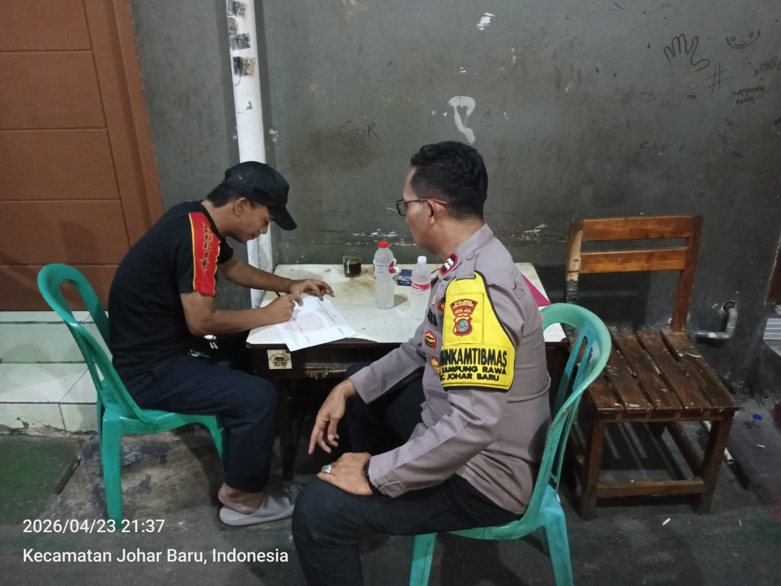 Jakarta Pusat – Komitmen Polri dalam mencetak anggota yang berintegritas terus diperkuat melalui penelusuran rekam jejak calon siswa (casis). Pada Kamis (23/4/2026) pukul 21.30 WIB, Bhabinkamtibmas Kelurahan Kampung Rawa Aiptu Ikhwan Mulyadi melaksanakan kunjungan ke wilayah pemukiman warga di Jalan Rawa Sawah 2 RT 03/RW 06, Johar Baru, Jakarta Pusat.