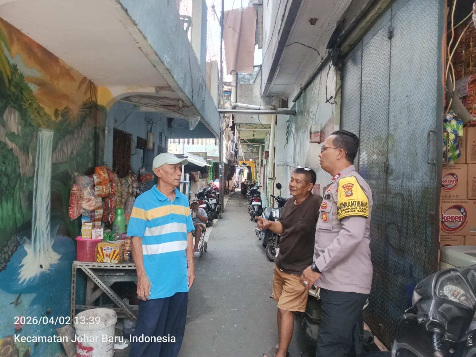 Jakarta Pusat – Dalam rangka menjaga stabilitas kamtibmas, jajaran Polsek Johar Baru kembali mengintensifkan kegiatan cooling system melalui patroli wilayah dan door to door system (DDS) di permukiman warga. Kegiatan ini dilaksanakan pada Kamis, 02 April 2026 pukul 13.39 WIB, berlokasi di Jl. Rawa Sawah 3 Gang Betok RT 12/RW 01, Kelurahan Kampung Rawa, Kecamatan Johar Baru, Jakarta Pusat.