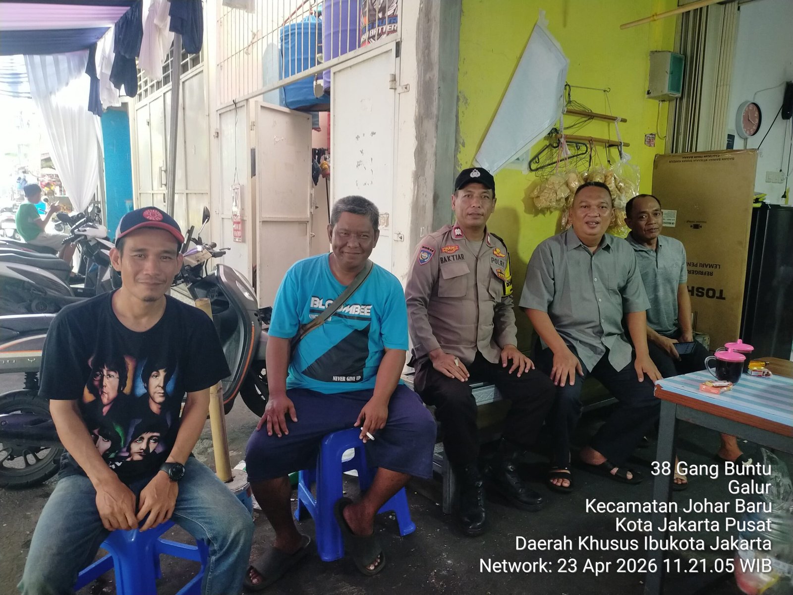 Jakarta Pusat – Upaya memperkuat keamanan dan ketertiban masyarakat terus dilakukan jajaran Polsek Johar Baru melalui pendekatan langsung ke warga. Pada Kamis, 23 April 2026, sekitar pukul 11.00 WIB, Bhabinkamtibmas Kelurahan Galur melaksanakan patroli dan sambang warga di Jalan Rawa Tengah RT 004/07, Kelurahan Galur, Kecamatan Johar Baru, Jakarta Pusat.