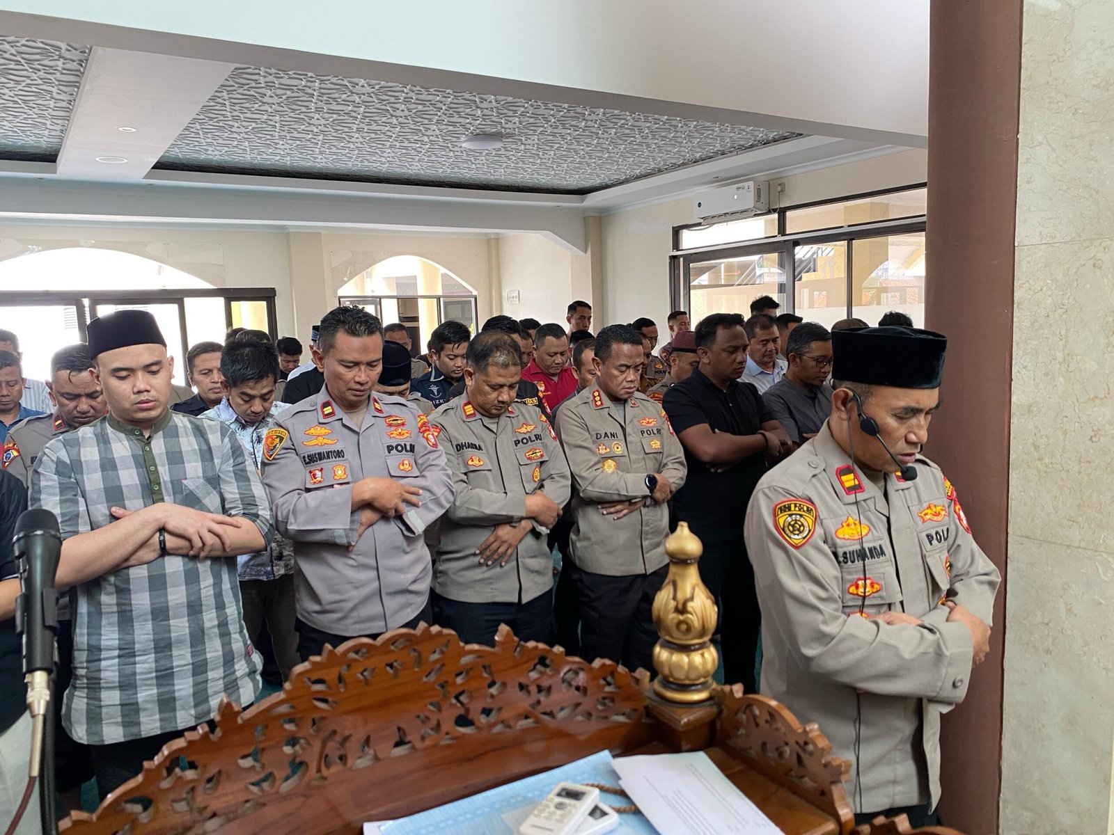refubliknews.com, – Kota Bekasi — Polres Bekasi Kota menggelar acara solat ghoib dan doa bersama untuk menghormati para syuhada Polri yang gugur dalam tugas di Polda Lampung. Acara ini berlangsung di Masjid Jami Al Mukmin, dimulai pada pukul 12.00 WIB, Setelah Pelaksanaan Solat Zhuhur berjamaah yang dipimpin oleh Kapolres Metro Bekasi Kota, Kombes Pol Dani Hamdani, S.I.K., M.P.M., dan Sebagai imami oleh Ustadz Iptu H. Bonin Suhanda, S.Ag., M.Ag.[18/3/25]