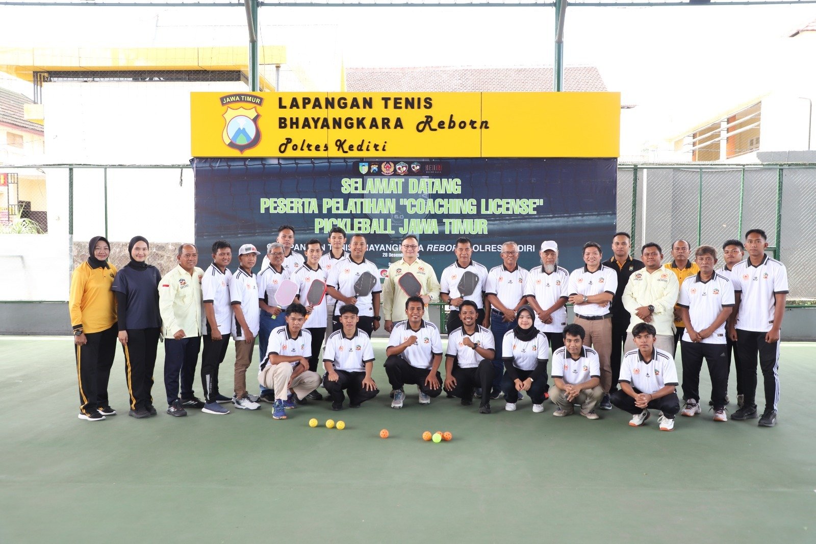 Lapangan Tenis Bhayangkara Reborn Polres Kediri menjadi lokasi Penataran Pelatih Tingkat Dasar yang digelar KONI Kabupaten Kediri bersama Indonesia Pickleball Federation (IPF) Jawa Timur, dan resmi dibuka oleh Kapolres Kediri AKBP Bramastyo Priaji, S.H., S.I.K., M.Si., Minggu (29/12/2025).