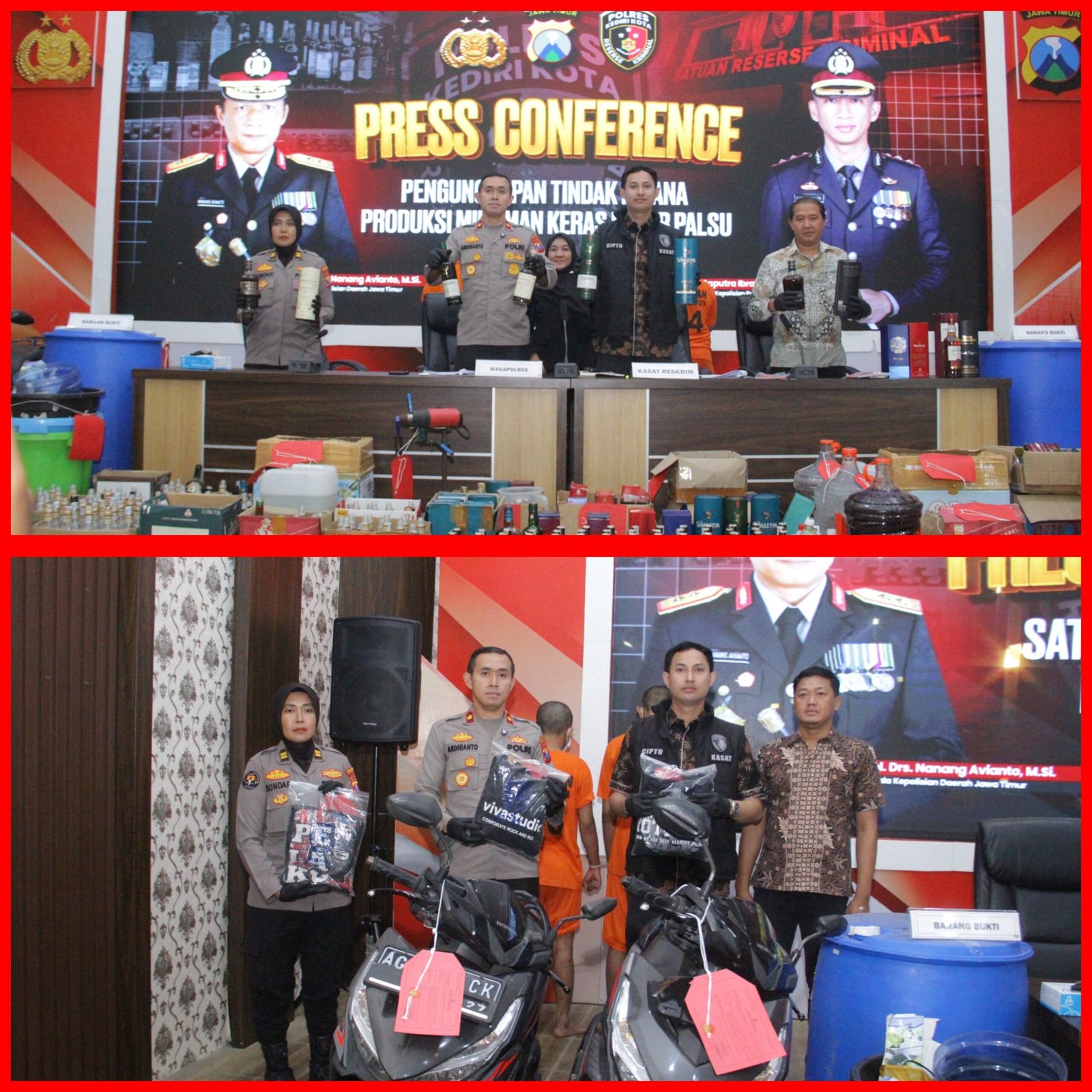 adanya miras impor palsu yang terjadi di wilayah Kediri dimana pelaku melakukan produksi beberapa merk miras impor yang didistribusikan di wilayah Kediri. Hal ini menjadi atensi perhatian semua pihak khususnya masyarakat untuk lebih antisipasi dan waspada terhadap peredaran miras palsu. “Miras palsu ini standarnya belum terpenuhi ijinnya,” ucapnya.