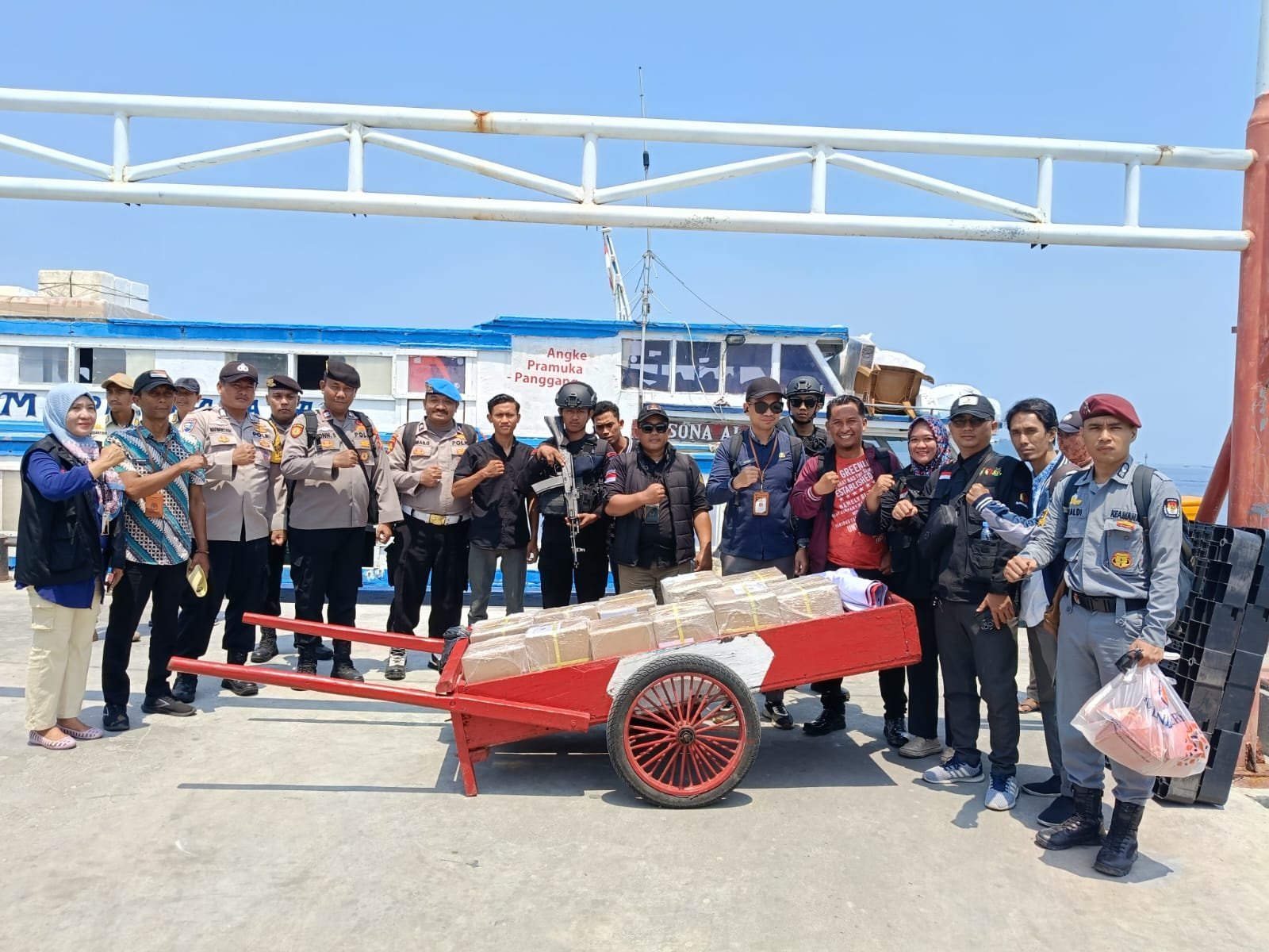 refubliknews.com, – Jakarta – Polres Kepulauan Seribu melaksanakan pengamanan dan pengawalan dalam pendistribusian logistik KPU Pemilu Gubernur dan Wakil Gubernur Provinsi DKI Jakarta Tahun 2024, Jumat (18/10/2024). Pengawalan dimulai dari Pelabuhan Muara Angke menuju Gudang KPU Pulau Pramuka, Kelurahan Pulau Panggang, Kecamatan Kepulauan Seribu Utara. Penggunaan transportasi laut berupa KM Pesona Alam dipersiapkan untuk mengangkut logistik pemilu, termasuk 11 kotak suara yang berisi sebanyak 21.452 lembar kertas suara.