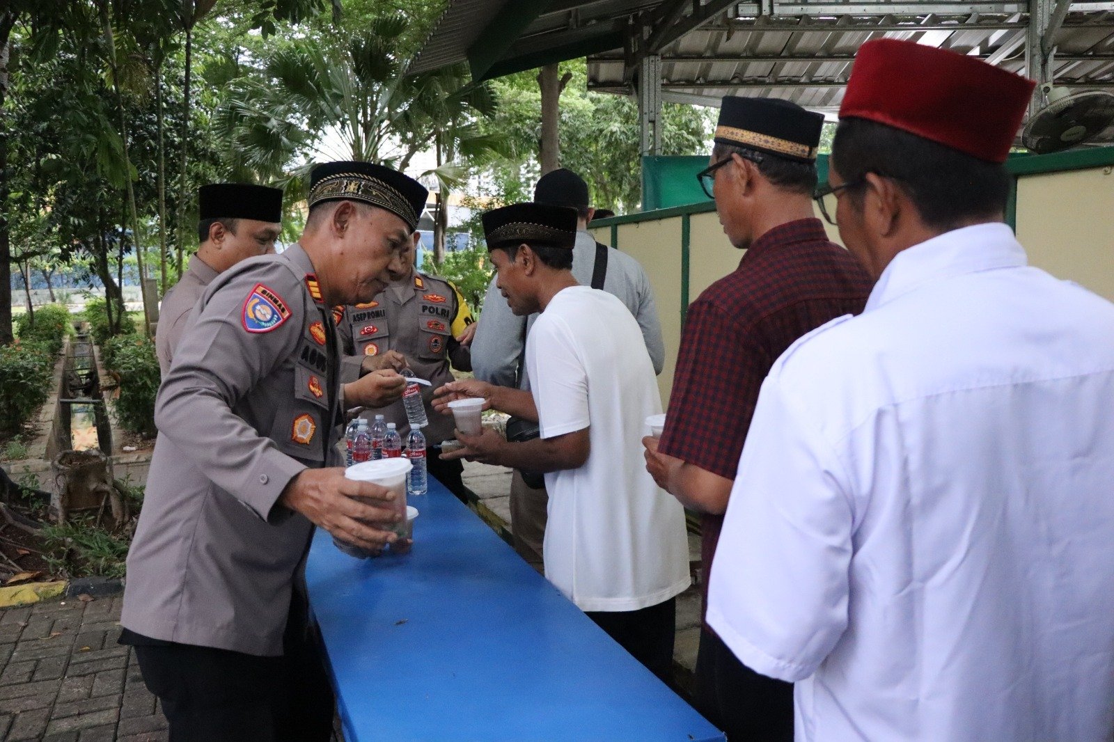 Kegiatan ini dipimpin oleh Kasat Pam Obvit Polres Kepulauan Seribu, AKP Asep Romli, yang bertindak sebagai Perwira Piket Pawas, bersama Personel Piket Fungsi. Sebanyak 50 paket takjil dibagikan kepada para nelayan dan warga yang berada di sekitar Masjid Baitul Jannah menjelang waktu berbuka puasa.