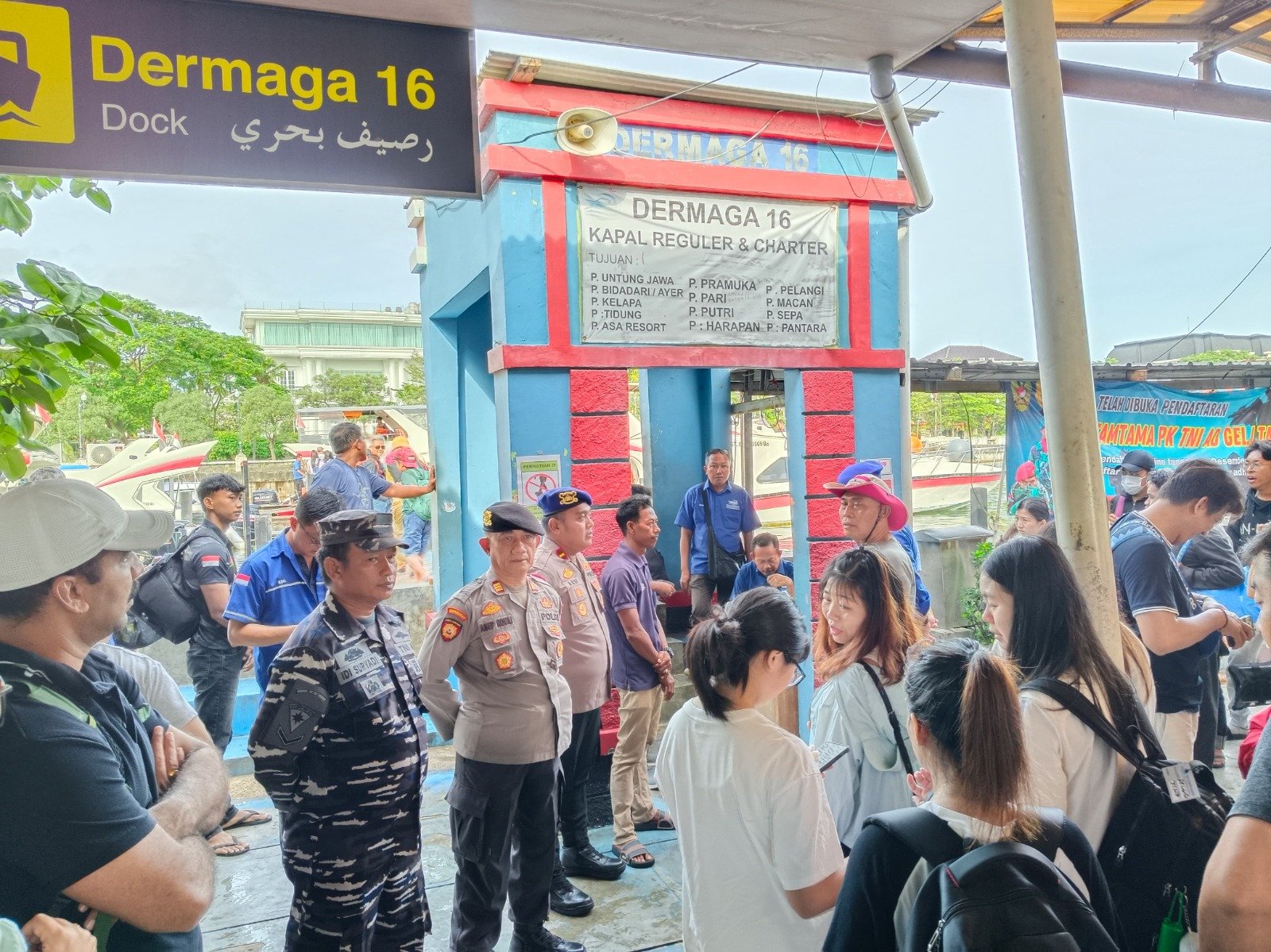 refubliknews.com, – Jakarta – Polres Kepulauan Seribu bersama TNI dan instansi terkait melaksanakan pengamanan keberangkatan kapal wisatawan menuju Kepulauan Seribu di Dermaga Marina Ancol, Jakarta, pada Minggu (26/01/2025). Kegiatan ini dilakukan untuk memastikan kelancaran serta keselamatan wisatawan selama perjalanan dan saat berwisata di Kepulauan Seribu.