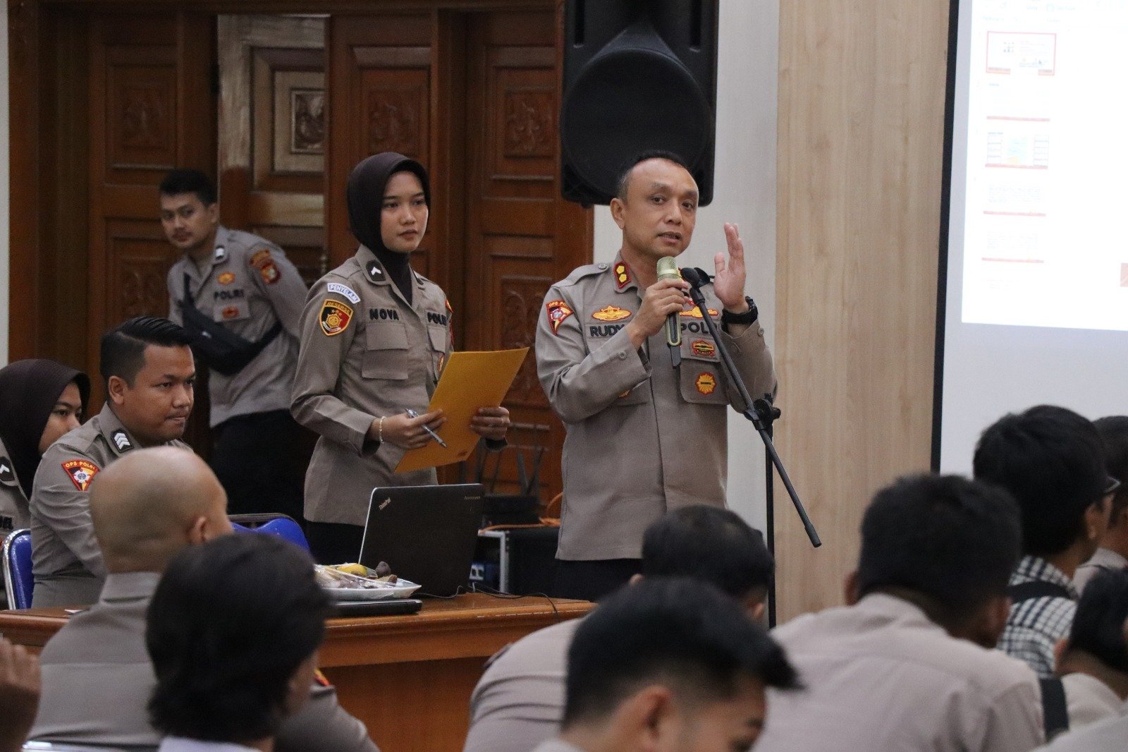 Kapolres Kepulauan Seribu, AKBP Ajie Lukman Hidayat, S.I.K., M.H., memimpin dan memberikan sambutan sekaligus membuka kegiatan tersebut. Dalam sambutannya, Kapolres menekankan pentingnya kegiatan ini untuk meningkatkan profesionalisme, kemampuan dan kesiapan anggota dalam menjalankan tugas pengamanan Pilkada. “Saya mengingatkan untuk mengikuti kegiatan ini dengan serius, ikuti arahan paparan, dan pahami materi yang diberikan. Kalau perlu, catat setiap poin penting,” ujarnya.