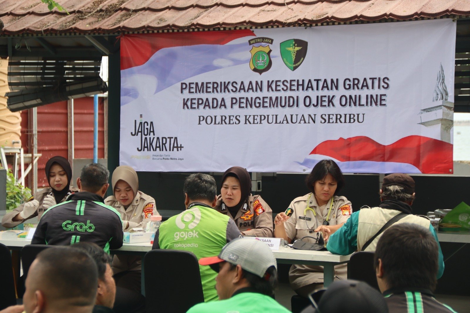 Kegiatan berlangsung dengan antusiasme tinggi dari para pengemudi ojol yang hadir. Pemeriksaan kesehatan meliputi pengecekan tekanan darah, gula darah, hingga konsultasi kesehatan umum. Tim medis dari Seksi Dokkes (Sidokkes) Polres Kepulauan Seribu turut memberikan pelayanan maksimal serta edukasi mengenai pentingnya menjaga pola hidup sehat agar tetap bugar saat bekerja.