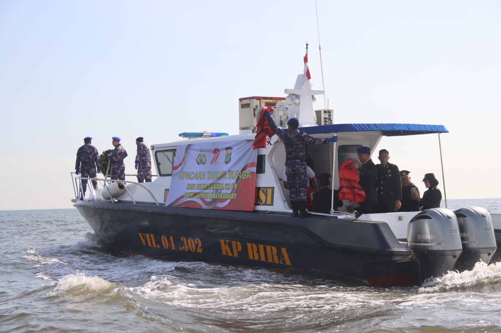 Sesampainya di titik tengah laut, Kapolres bersama pejabat utama dan anggota dengan khidmat menaburkan bunga sebagai bentuk penghormatan kepada para pahlawan yang telah gugur dalam tugas menjaga keamanan dan ketertiban di laut maupun di darat. Prosesi ini juga menjadi simbol doa agar anggota Polri senantiasa diberi keselamatan dan kekuatan dalam menjalankan tugas.