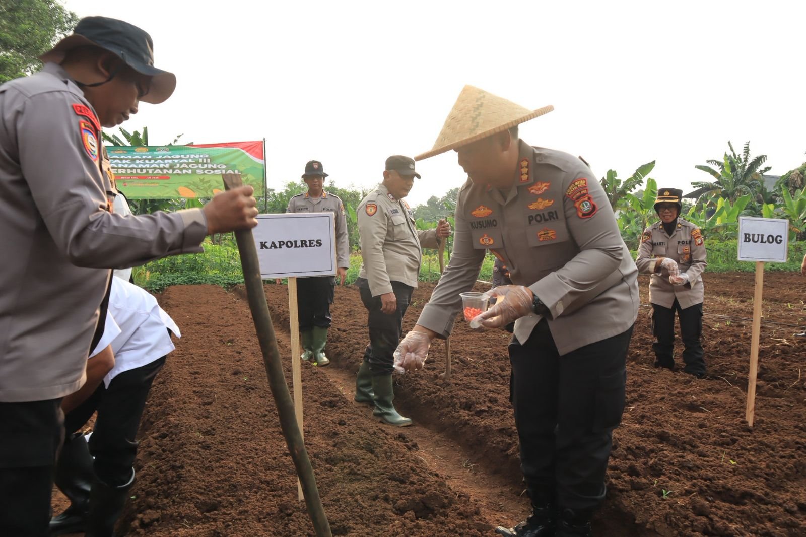 “Penanaman jagung serentak ini adalah bentuk komitmen Polri dalam mendukung ketahanan pangan nasional. Kami mengajak seluruh elemen masyarakat, mulai dari kepolisian, TNI, pemerintah daerah, hingga kelompok tani, untuk bersama-sama berperan aktif dalam menjaga swasembada pangan. Dengan sinergi dan gotong royong, kita optimis dapat mewujudkan ketahanan pangan yang kuat di Kota Bekasi dan Indonesia pada umumnya.” Ujarnya.