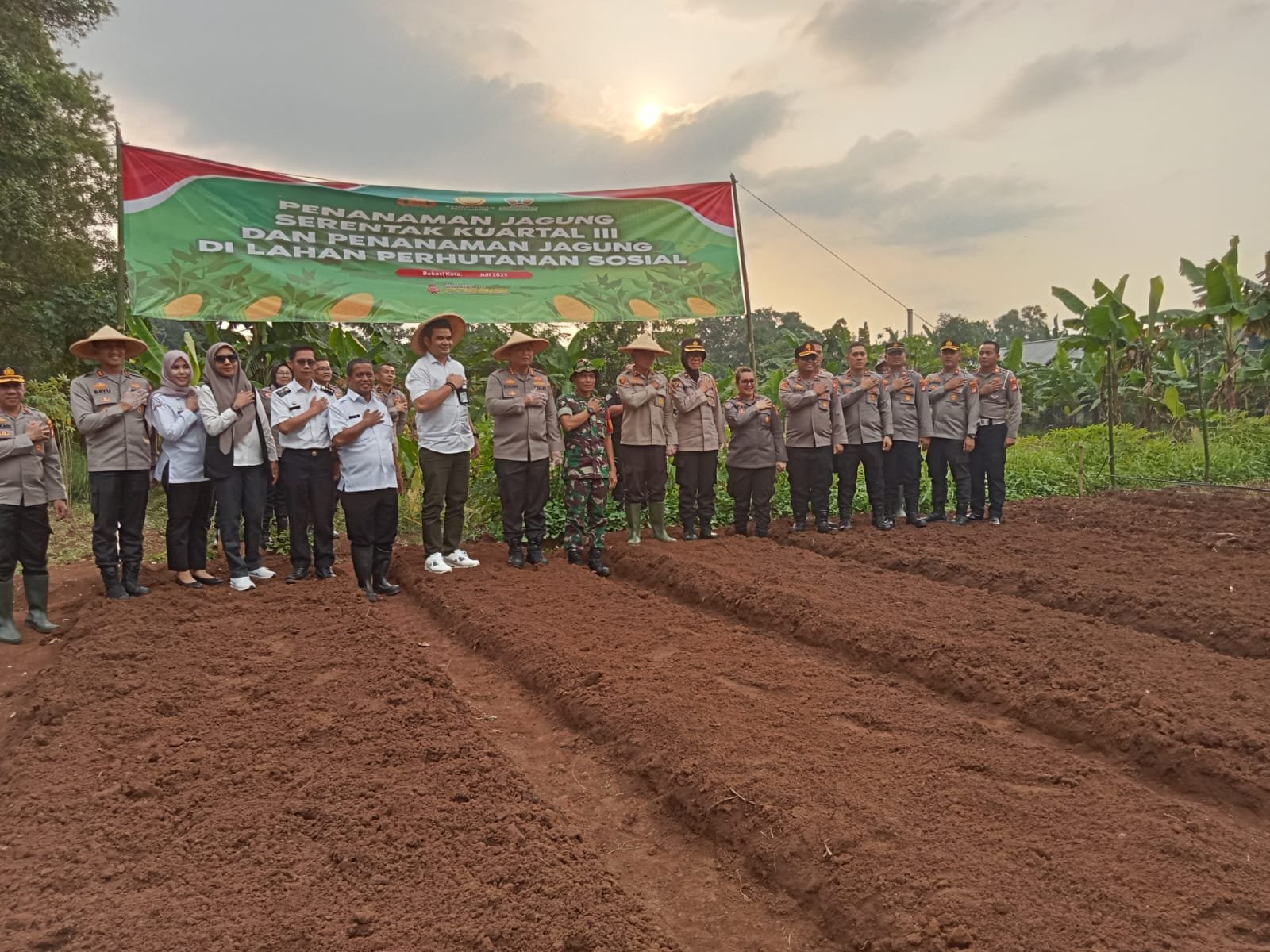 refubliknews.com,- Kota Bekasi — Dalam upaya mendukung program ketahanan pangan nasional yang dicanangkan oleh Presiden Republik Indonesia, Polres Metro Bekasi Kota Polda Metro Jaya menggelar kegiatan Penanaman Jagung Serentak Kuartal III di Gg. Mangga, Kelurahan Jatimurni, Kecamatan Pondok Melati, Kota Bekasi. Acara yang berlangsung pada hari Rabu sore ini dihadiri oleh sekitar 100 peserta, terdiri dari unsur kepolisian, TNI, pemerintah daerah, kelompok tani, serta instansi terkait.(9/7/25)