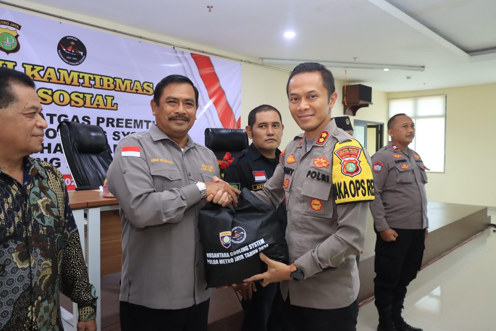 refubliknews.com, – Kota Bekasi , – Dalam rangka Operasi Nusantara Colling System Yang di Gagas Oleh Mabes Polri ,Wakapolres Metro Bekasi Kota, AKBP Dhany Aryanda, S.I.K., mewakili Kapolres Metro Bekasi Kota, Kombes Pol Dani Hamdani, S.I.K., M.P.M., menerima 400 paket sembako dari tim Operasi Nusantara Colling System (NCS) Mabes Polri dan pejabat Ditbinmas Polda Metro Jaya. Penyerahan bantuan ini berlangsung di Aula lantai 7 Polres Metro Bekasi Kota, Kamis (12/12/2024), pukul 09.00 WIB, dalam rangka mendukung pemeliharaan kamtibmas menuju Pilkada 2024 yang aman dan damai.