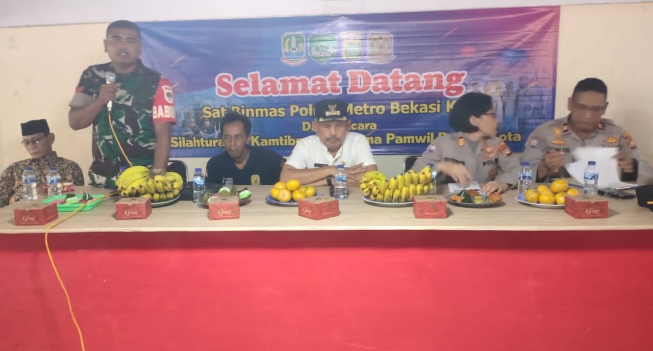 refubliknews.com, – Kota Bekasi – Polres Metro Bekasi menjalin silaturahmi dengan Mitra Polri di Kota Bekasi. Langkah itu untuk merajut Kota Bekasi yang kondusif dan ramah terhadap sesama masyarakat di lingkungan. Salah satunya silaturahmi dengan Mitra Polri Pengamanan Wilayah (Pamwil) Pondok gede, bertempat di lantai Basement Gedung Kelurahan Jaticempaka, Kecamatan Pondokgede, Kota Bekasi, Jawa Barat, Jumat (14/6/2024).