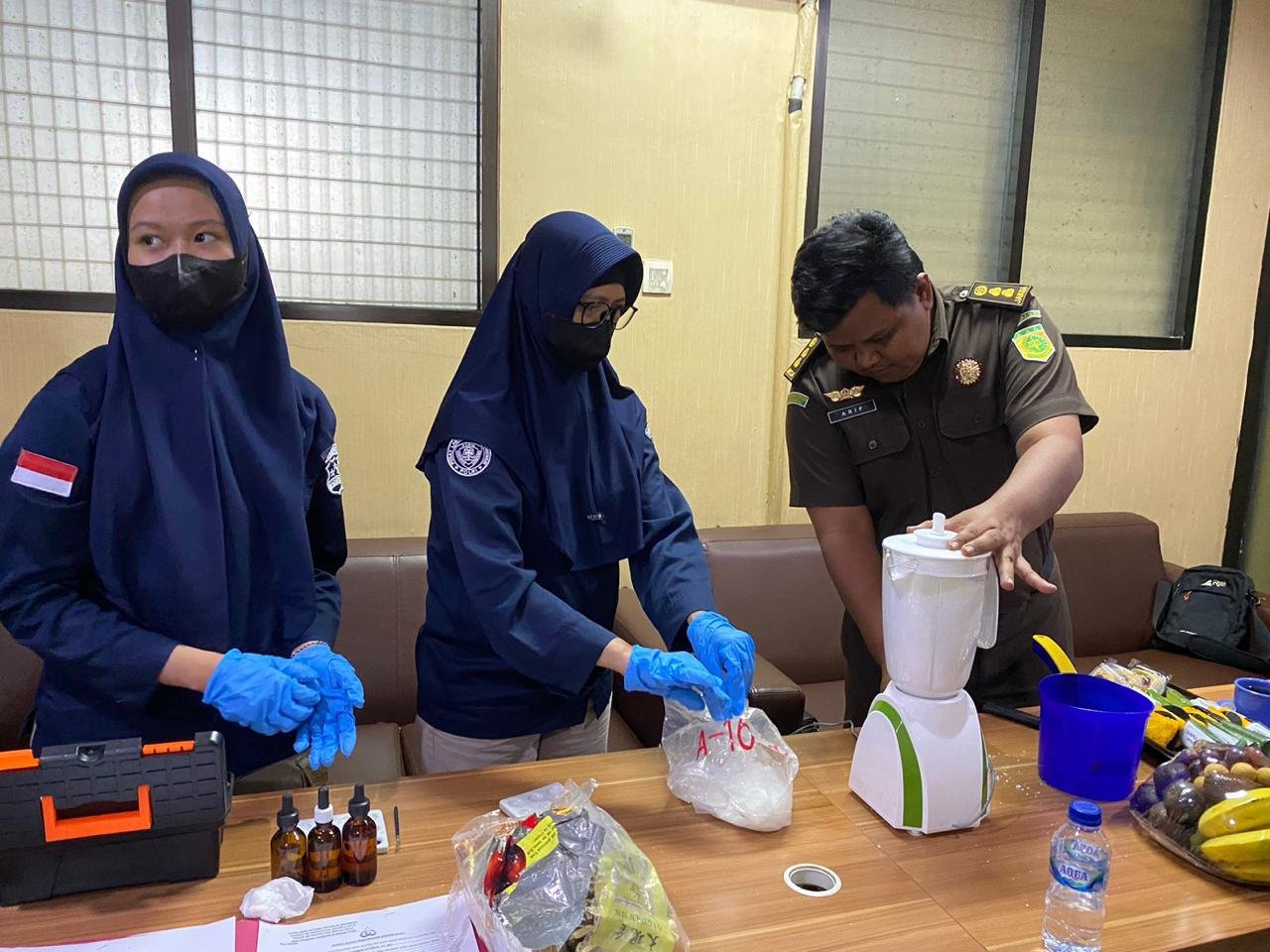 Turut hadir dalam kegiatan ini perwakilan dari Puslabfor Bareskrim Polri, Kanit Provos, Ka Siwas Polres Metro Bekasi Kota, perwakilan Kejaksaan Negeri Bekasi, dan seorang pengacara. Sebelum dimusnahkan, tim Puslabfor Mabes Polri melakukan tes untuk memastikan kandungan narkotika dalam barang bukti tersebut. Setelah dinyatakan positif, sabu tersebut kemudian dimusnahkan dengan cara diblender dalam air. Proses pemusnahan diakhiri dengan penandatanganan berita acara.