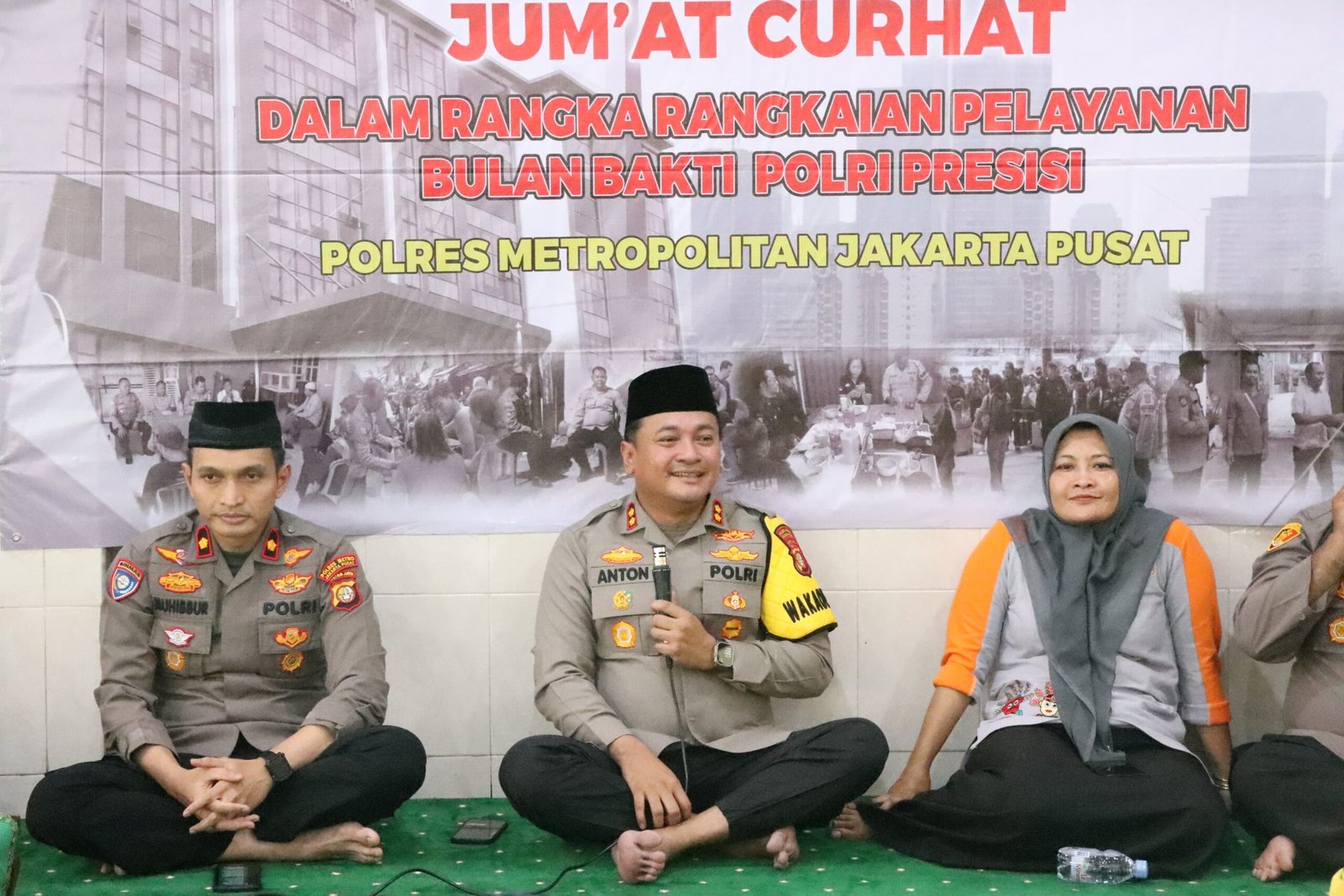 Jakarta – Polres Metro Jakarta Pusat kembali melaksanakan kegiatan Jumat Curhat Plus untuk menyerap aspirasi, saran dan masukan dari masyarakat serta melakukan Bakti Sosial yang diselenggarakan di Masjid Al-Jihad, Jl. Kramat Jaya RT.001/01 Kel. Johar Baru, Kec. Johar Baru Jakarta Pusat, Jumat (26/01/2024).