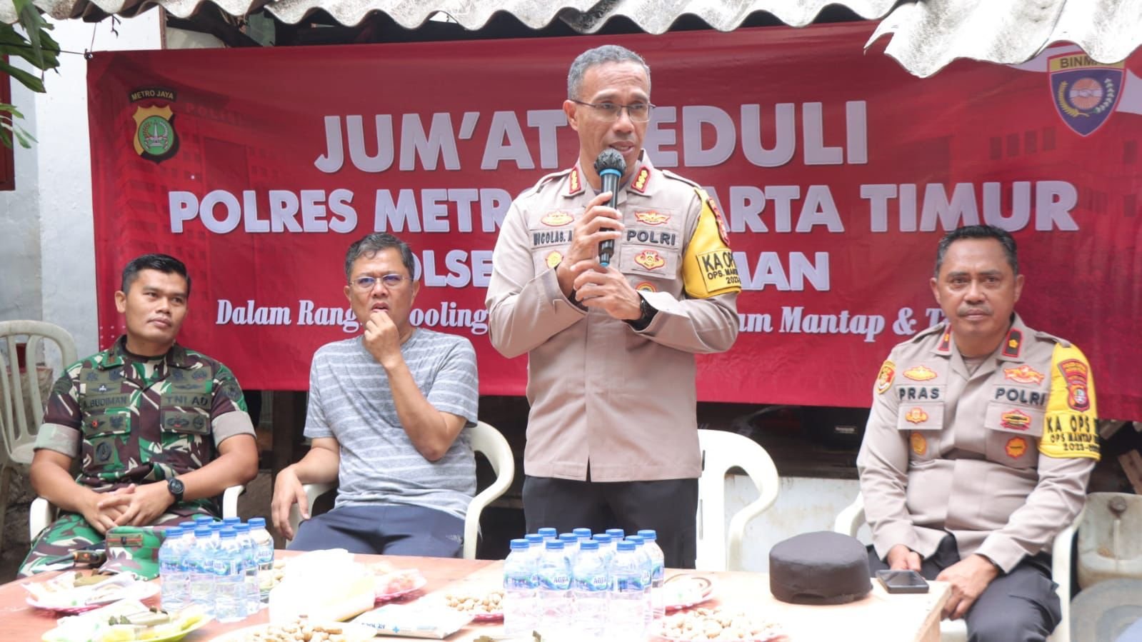Jakarta – Kapolres Metro Jakarta Timur Kombes Pol. Nicolas Ary Lilipaly memimpin kegiatan Jumat Curhat bersama warga Kelurahan Utan Kayu Utara Matraman sekaligus menyalurkan bantuan sosial.