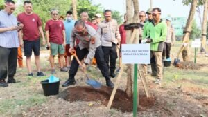 JAKARTA – Jajaran Polres Metro Jakarta Utara kembali melakukan penanaman pohon dalam rangka memeriahkan Hari Kemerdekaan Republik Indonesia ke-78 dengan tema ‘Polri Peduli Negeri Penghijauan Sejak Dini’.