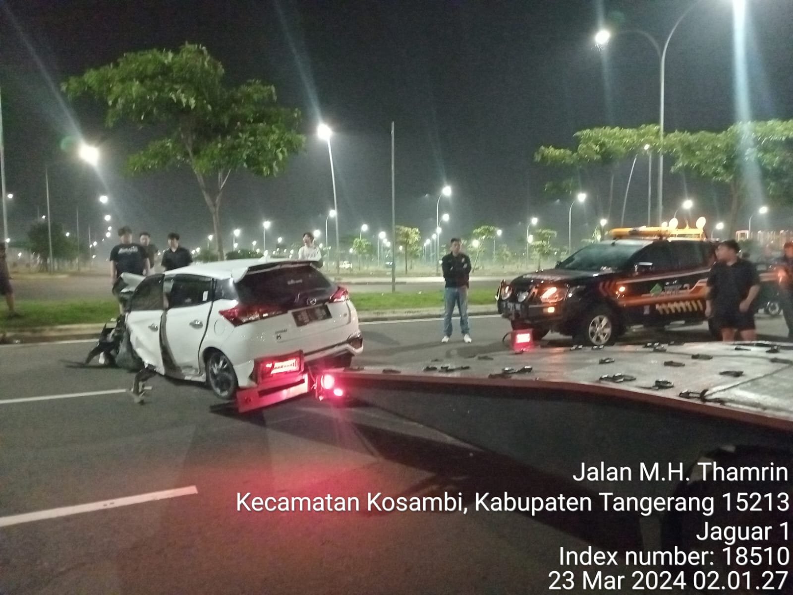 Kecelakaan tragis melibatkan Mitsubishi Pajero, dengan mobil towing yang hendak menaikan mobil Toyota Yaris terjadi di Jalan MH Thamrin, Jembatan Tokyo PIK 2, Kosambi, Kabupaten Tangerang.