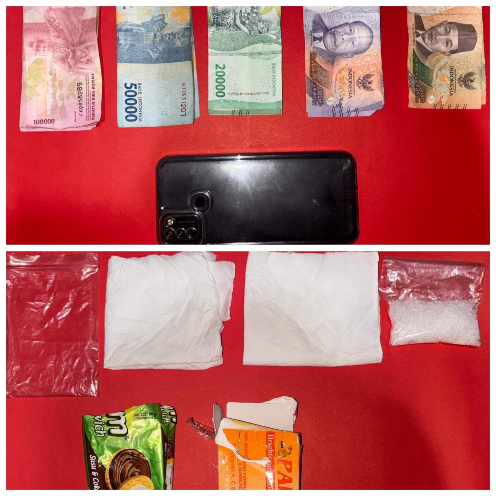 Dari hasil penggeledahan, petugas menemukan sejumlah barang bukti, diantaranya 1 plastik klip berisi sabu dengan berat kotor 17,69 gram, uang tunai sebesar Rp1.430.000 yang diduga hasil transaksi narkoba.