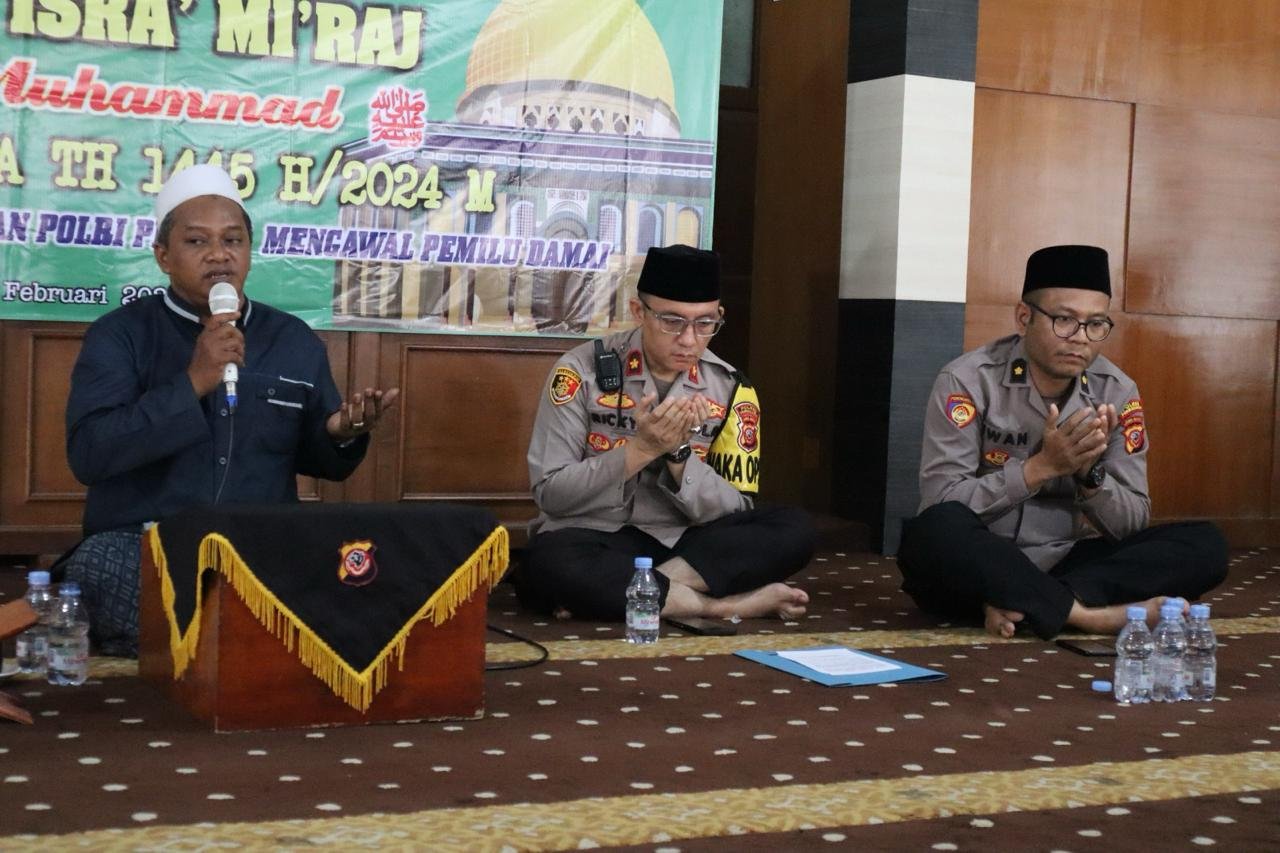 Purwakarta.- Polres Purwakarta menggelar kegiatan peringatan Isra’ Mi’raj Nabi Muhammad SAW 1445 H / 2024 M dan do’a bersama untuk pasca pemungutan suara Pemilu 2024 aman, damai dan sejuk.