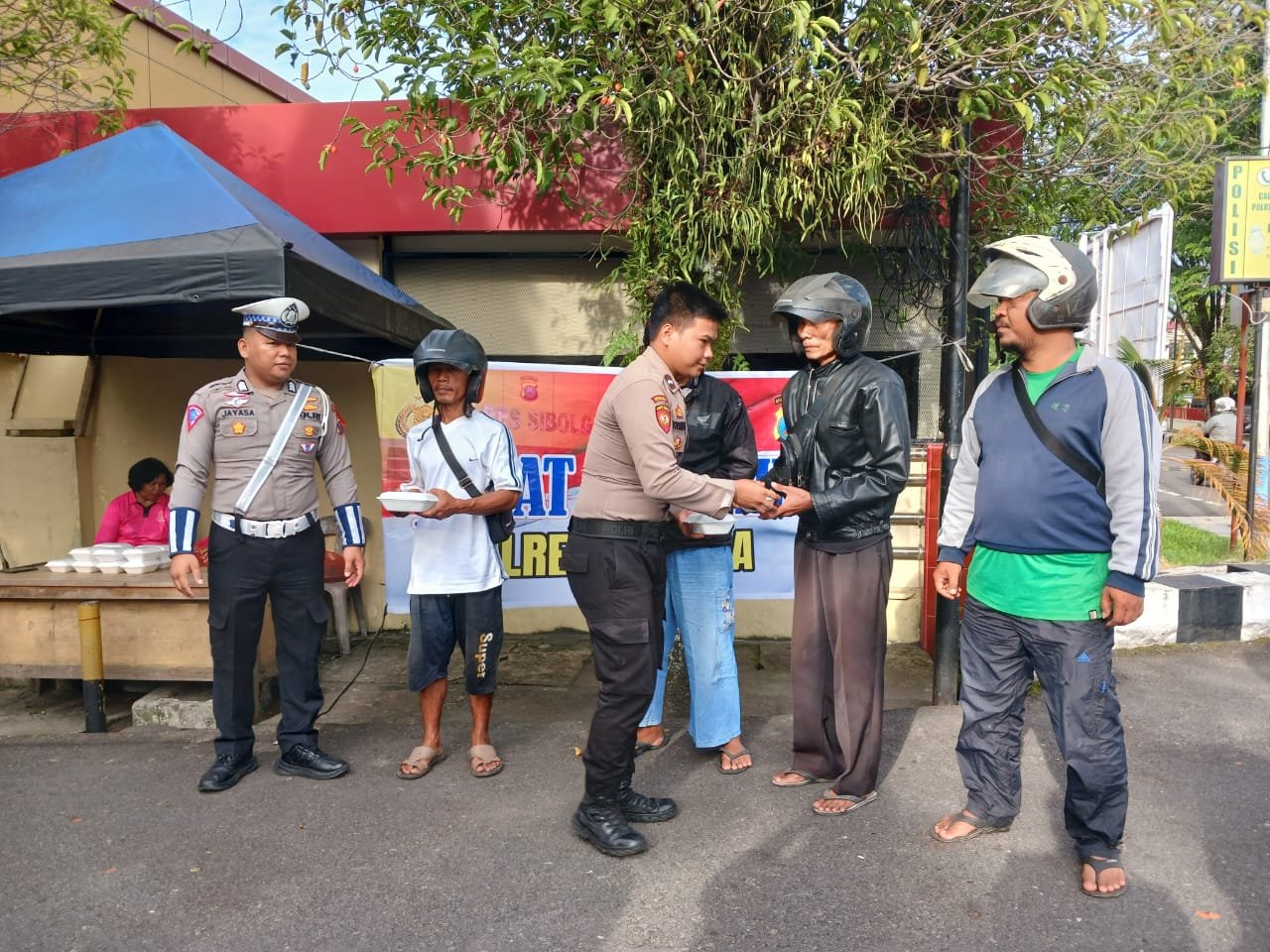 SIBOLGA – Dalam rangka Jumat Berkah, Polres Sibolga bagikan Nasi dijalan Raya. Agar mengetahui apa saja informasi saran dari warga untuk Kamtibmas selalu kondusif di Kota Sibolga, Kapolres Sibolga AKBP Achmad Fauzy, SH, SIK, MIK, diwakili Kasat Binmas Polres Sibolga IPTU Martua Sinaga dan Kasat Narkoba Polres Sibolga IPTU Rahmad R. Hutagaol, SH, MH, bersama Personil Polres Sibolga, melaksanakan kegiatan Jumat Berkah dengan membagikan Nasi kepada warga yang melintas dijalan dan menyapa dengan humanis, sehingga warga dapat menyampaikan masukan saran kepada Polres Sibolga, untuk Kamtibmas agar terjaga dengan baik dan kondusif menjelang Pilkada Serentak Tahun 2024, di Kota Sibolga.