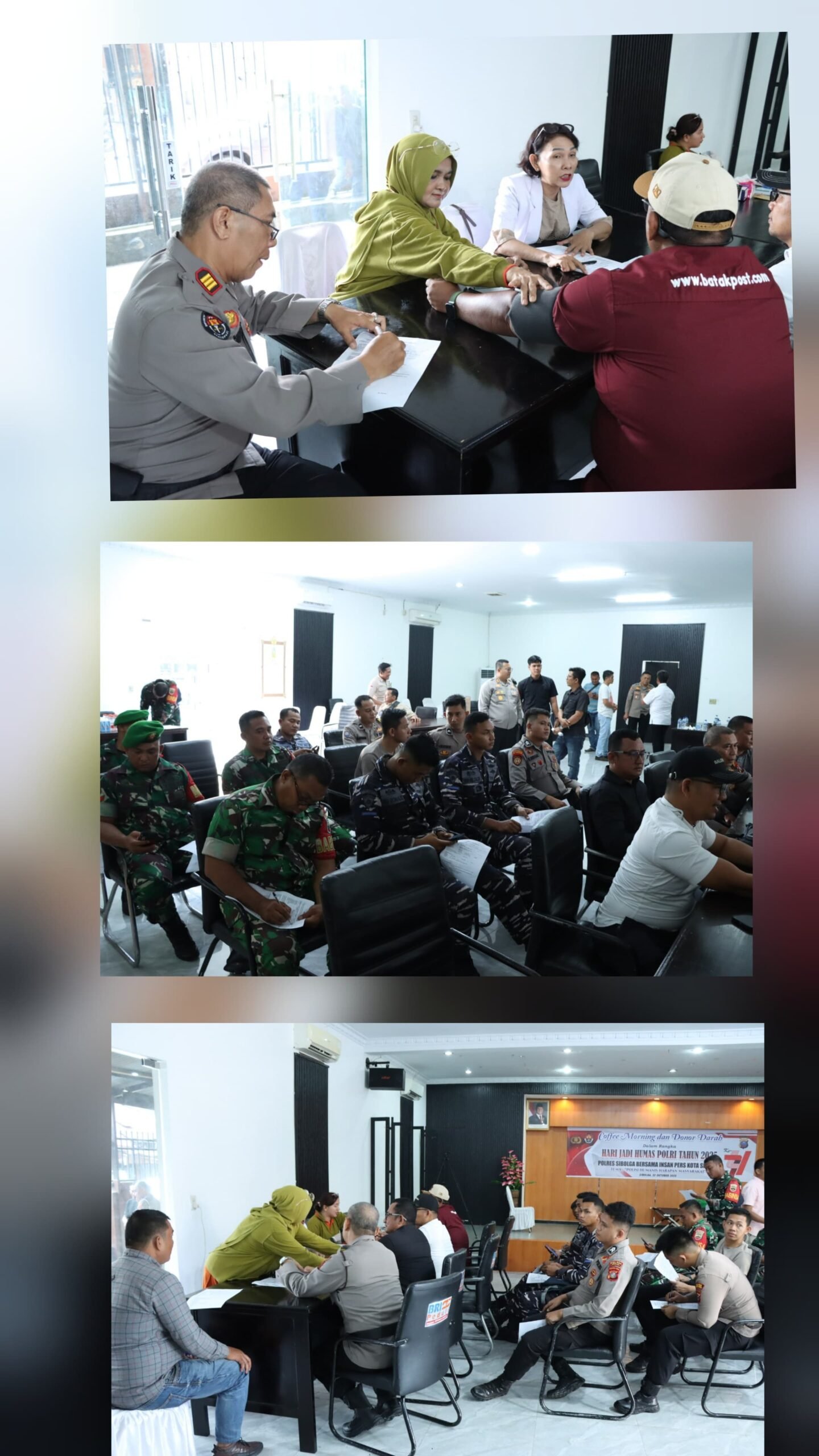SIBOLGA – Dalam rangka memperingati Hari Jadi Humas Polri Tahun 2025, Polres Sibolga menggelar kegiatan donor darah yang melibatkan insan pers, instansi terkait, dan masyarakat sekitar. Kegiatan sosial ini berlangsung pada Rabu (22/10/2025) di Aula Dr. HM. Jasin Polres Sibolga, dengan suasana penuh keakraban, kekeluargaan, dan semangat kebersamaan.