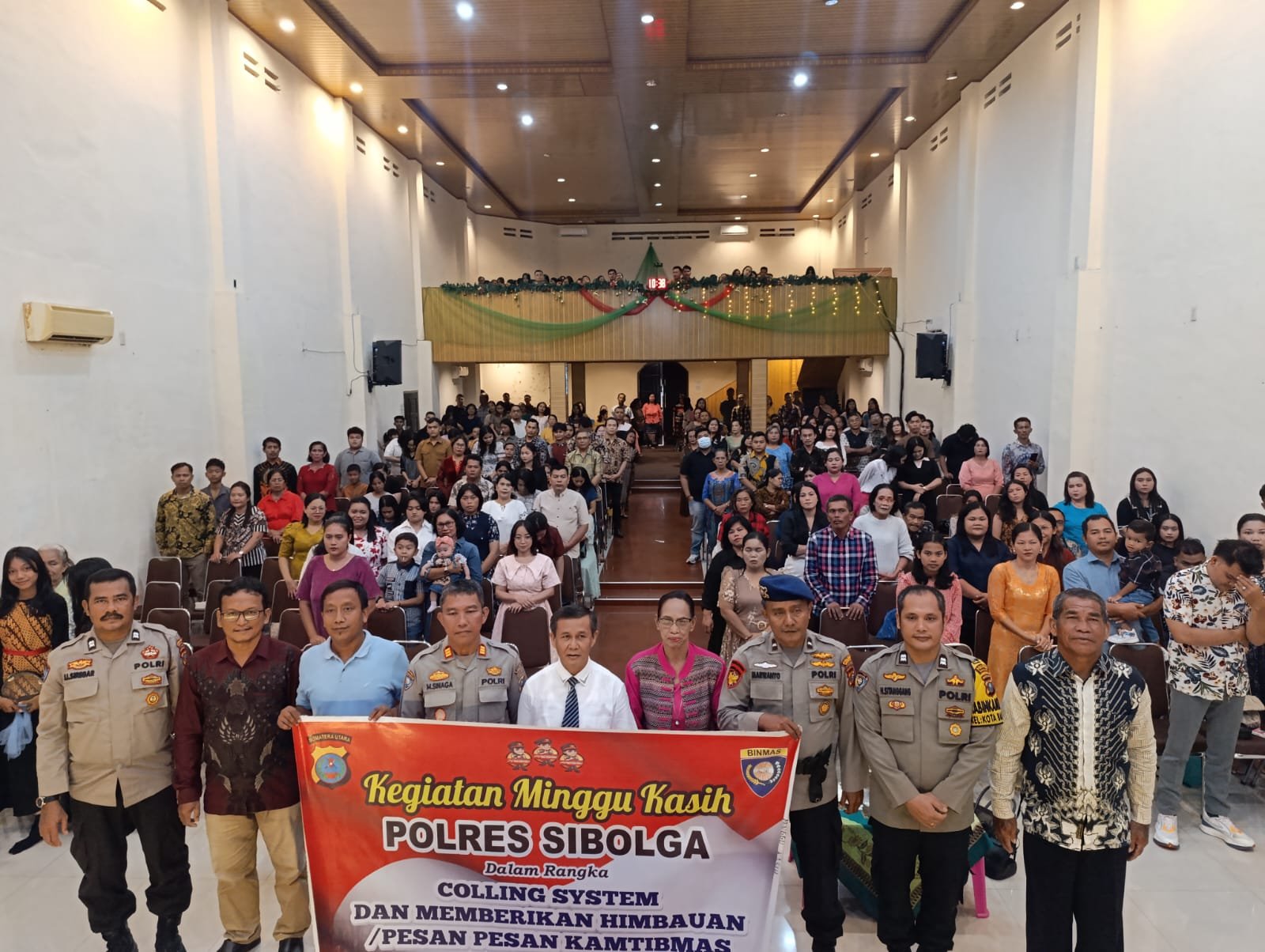 refubliknews.com,- SIBOLGA — Dalam rangka mempererat sinergitas antara Kepolisian dan masyarakat serta untuk mewujudkan situasi Kamtibmas yang aman dan kondusif di wilayah Kota Sibolga, Polres Sibolga melaksanakan kegiatan Minggu Kasih yang berlangsung pada Minggu, 28 September 2025 pukul 10.00 WIB di Gereja Bethel Indonesia (GBI) Victorya Sibolga, Jalan Commodor Yos Sudarso, Kelurahan Kota Baringin, Kecamatan Sibolga Kota.