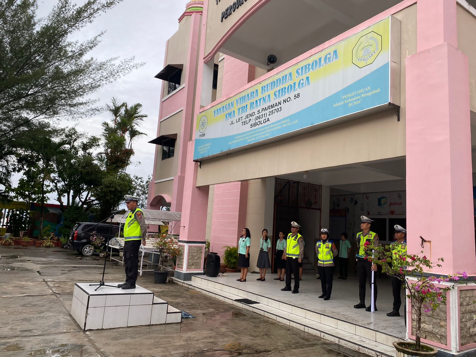 SIBOLGA – Dalam upaya meningkatkan kesadaran dan kedisiplinan berlalu lintas di kalangan pelajar, Satuan Lalu Lintas (Sat Lantas) Polres Sibolga melaksanakan kegiatan “Police Goes To School” di SMA Swasta Tri Ratna Sibolga, Selasa (11/11/2025) pagi.