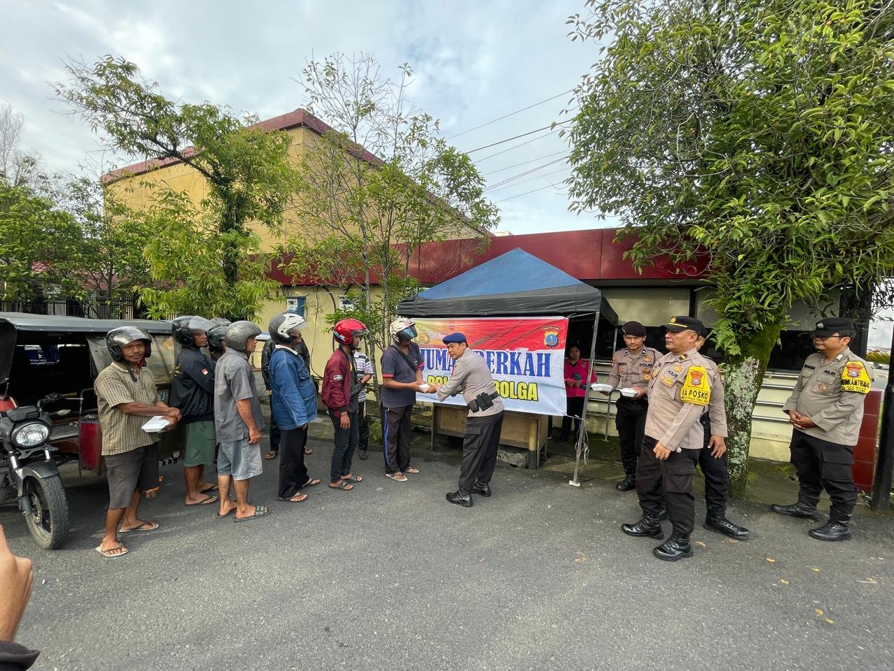 SIBOLGA – Dalam rangka Jumat Berkah, Polres Sibolga bagikan Nasi dijalan Raya. Agar mengetahui apa saja informasi saran dari warga untuk Kamtibmas selalu kondusif di Kota Sibolga, Kapolres Sibolga AKBP Achmad Fauzy, SH, SIK, MIK, diwakili Kasat Samapta Polres Sibolga AKP JP. Aruan, SE, Kasat Binmas Polres Sibolga IPTU Martua Sinaga dan Kasium Polsek Sibolga Sambas IPDA Dedi Kurniawan, bersama Personil Polres Sibolga, serta Pengurus Bhayangkari Cabang Sibolga, melaksanakan kegiatan Jumat Berkah dengan membagikan Nasi kepada warga yang melintas dijalan dan menyapa dengan humanis, sehingga warga dapat menyampaikan masukan saran kepada Polres Sibolga, untuk Kamtibmas agar terjaga dengan baik dan kondusif menjelang Pilkada Serentak Tahun 2024, di Kota Sibolga.