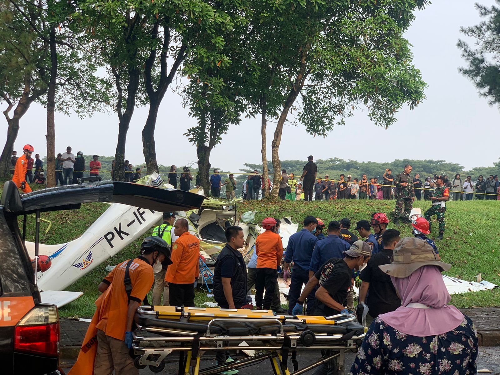 Pesawat latih milik Perkumpulan Penerbang Indonesia atau Indonesia Flying Club itu berjenis Cessna 172, dengan nomor registrasi PK-IFP. Tiga orang meninggal dunia akibat peristiwa itu. Dua korban berada dalam bangkai pesawat, dan satu berada di luar.